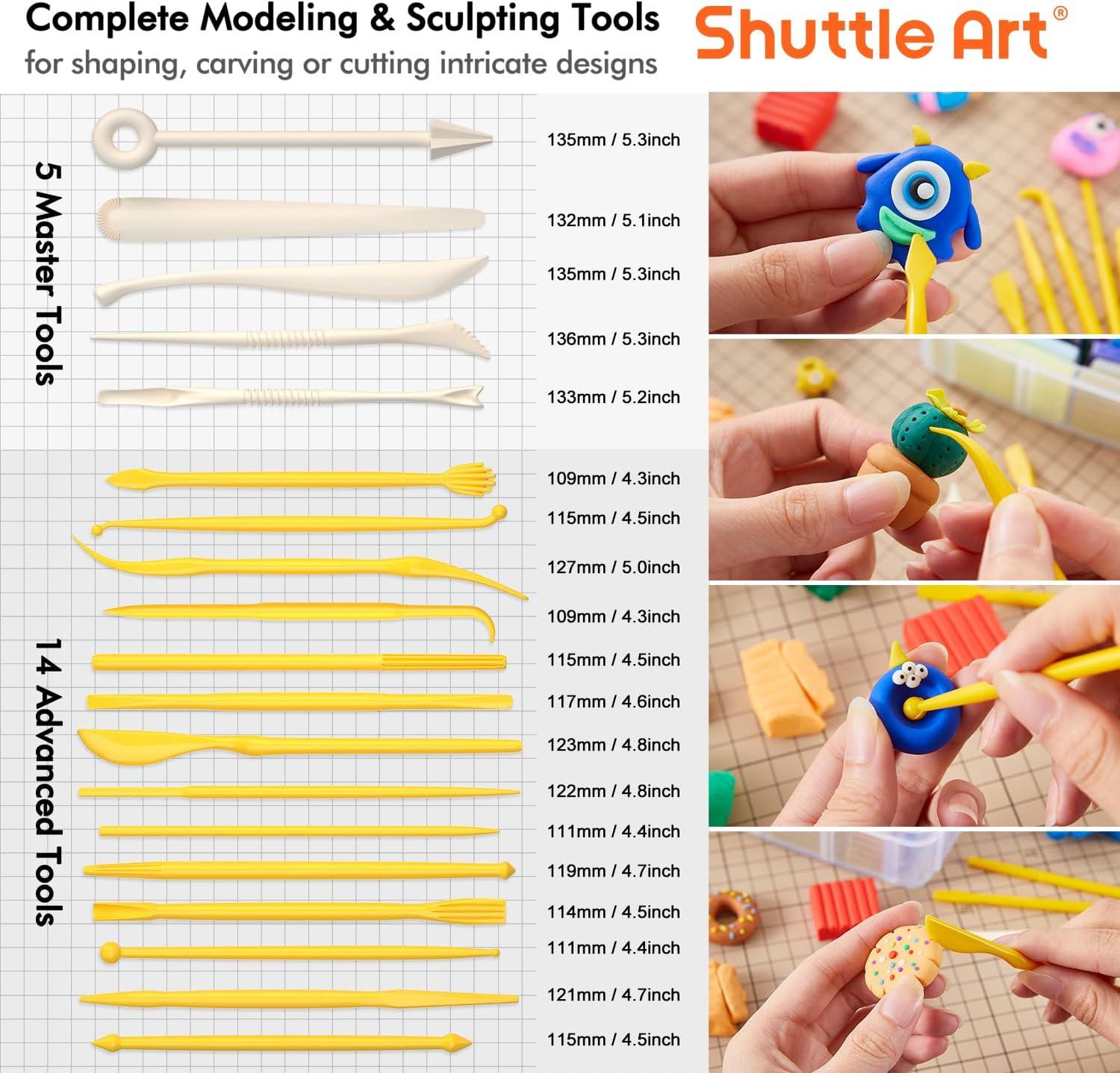 Shuttle Art Polymer Clay Kit – 60 Colors, 19 Tools, and 16 Accessories – Non-Toxic and Non-Sticky DIY Crafts for Kids and Adults(60 Colors)