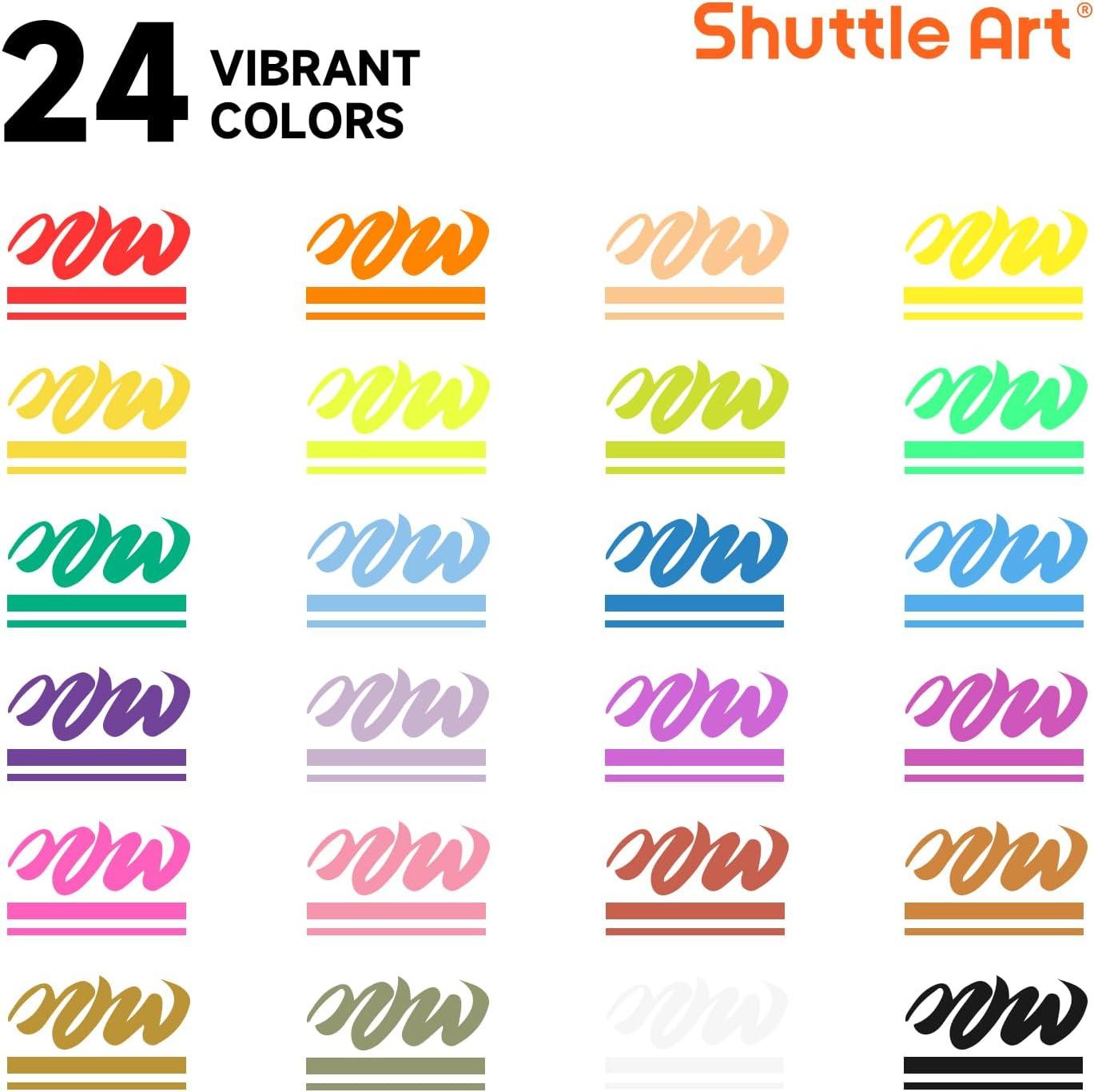 Shuttle Art 60 Colors Permanent Markers, Fine Point, Assorted Colors, Works on Plastic,Wood,Stone,Metal and Glass for Doodling, Coloring, Marking(24 Colors)