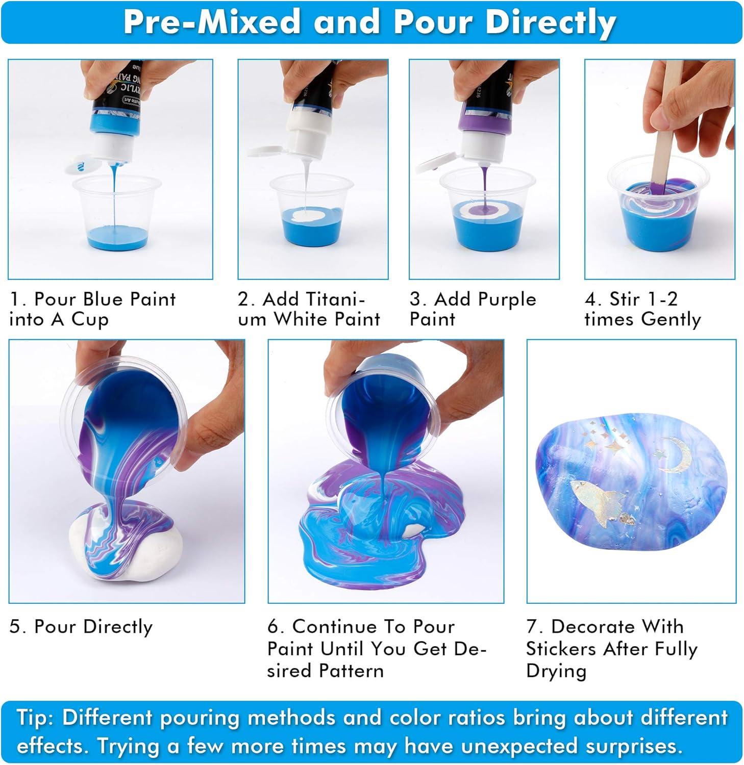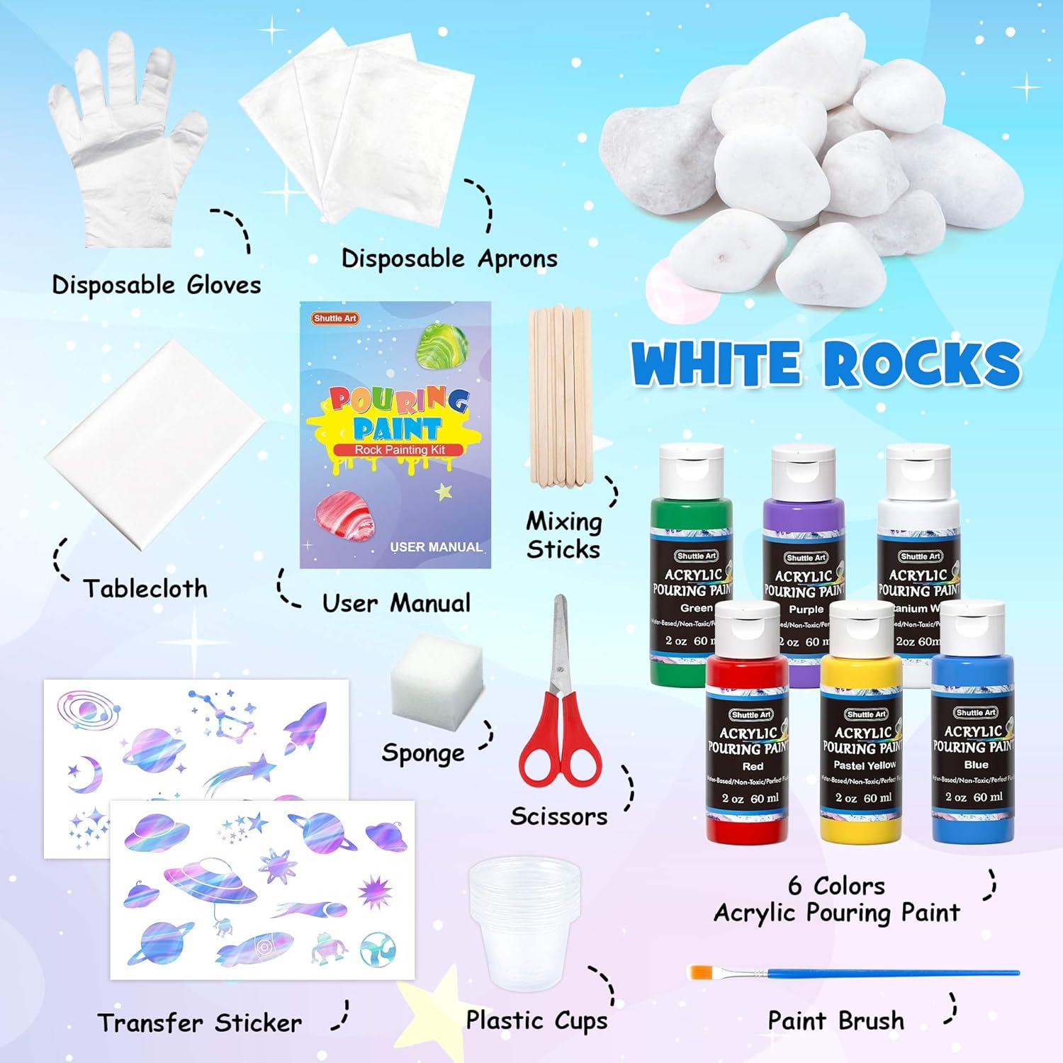 Rock Painting Kit, Shuttle Art 6 Colors Acrylic Pouring Paint Rock Painting Kit with White Rocks, Paint Brush, Transfer Stickers, Tablecloths and Pouring Tools for Kids, Easter Gift for Boys and Girls