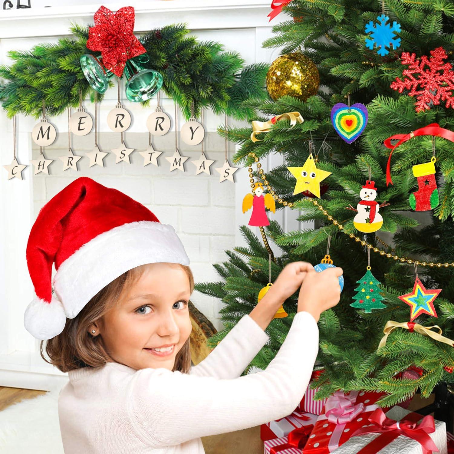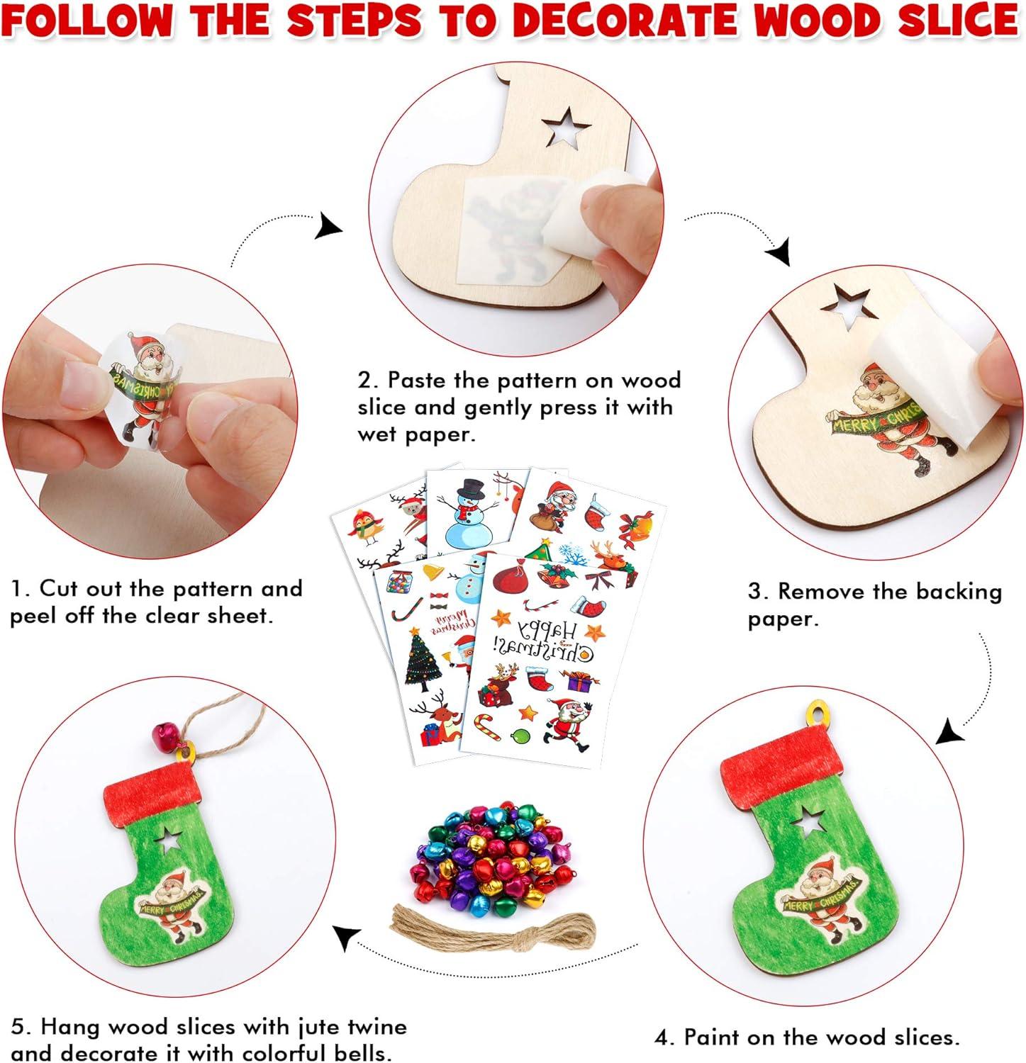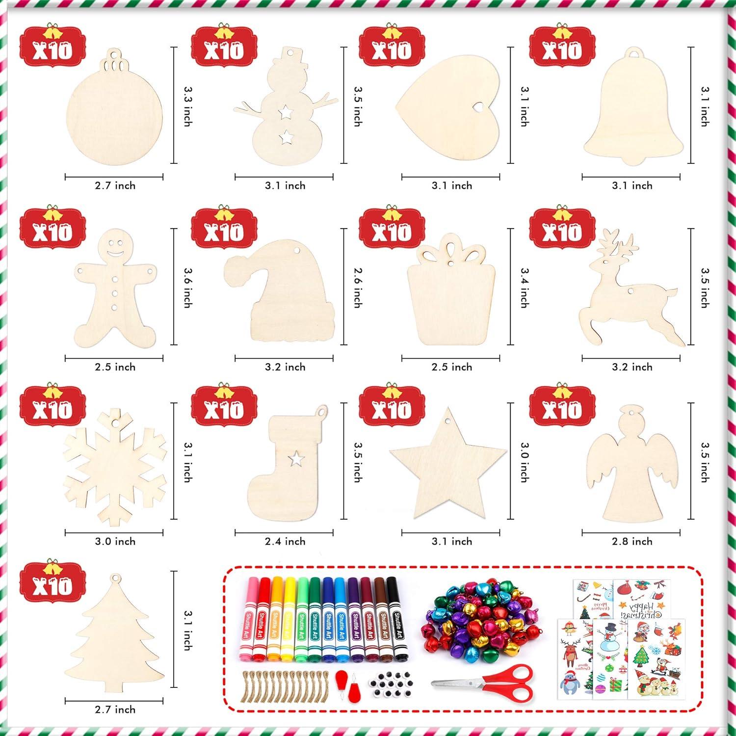 Shuttle Art 360 PCS Wooden Christmas Ornament Kit, 130 Unfinished Wood Slices with 13 Styles, 130 Jute Twine, 12 Colors Washable Markers, 50 Bells, DIY Christmas Decoration Crafts for Kids and Adults
