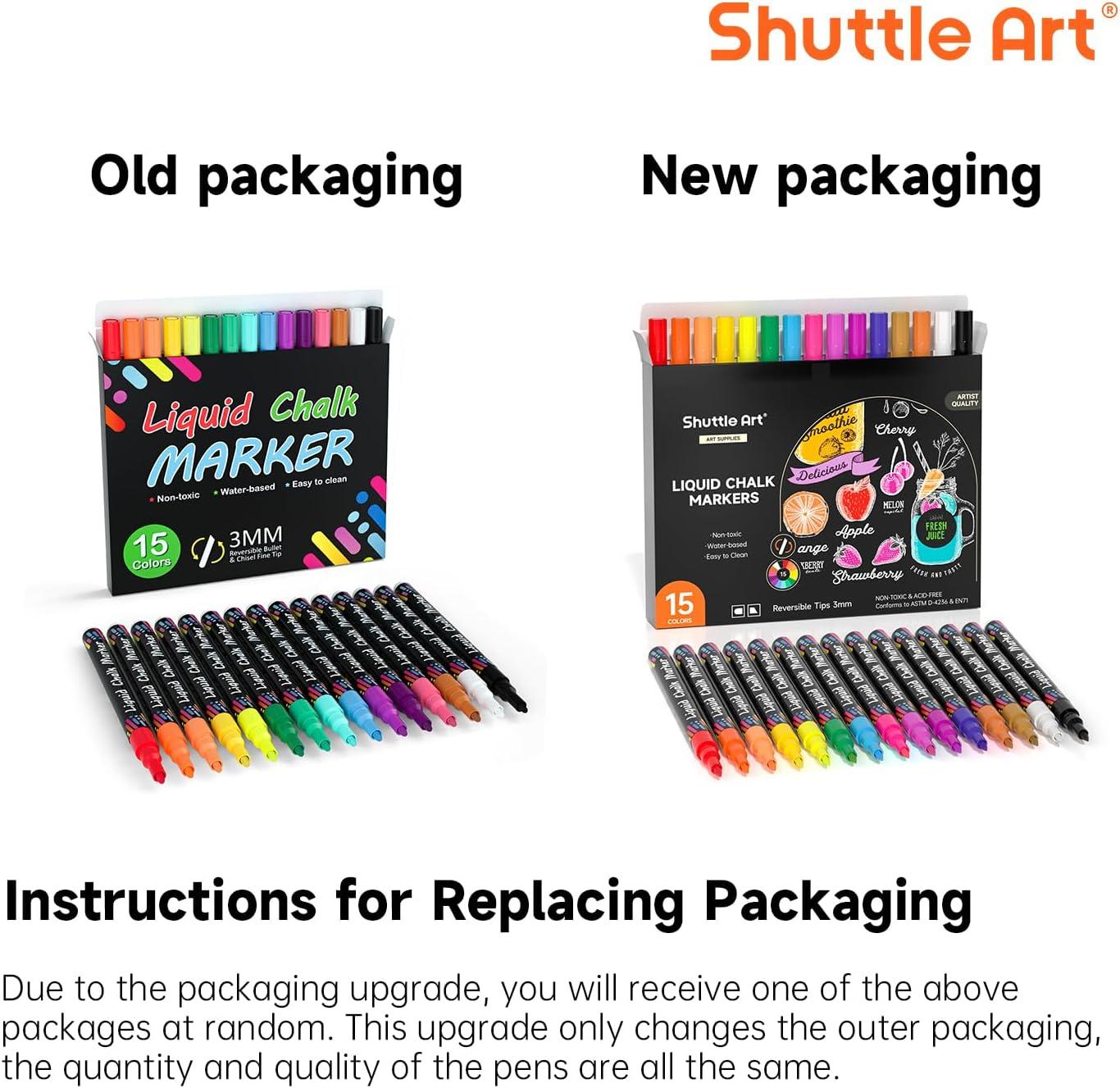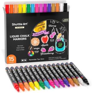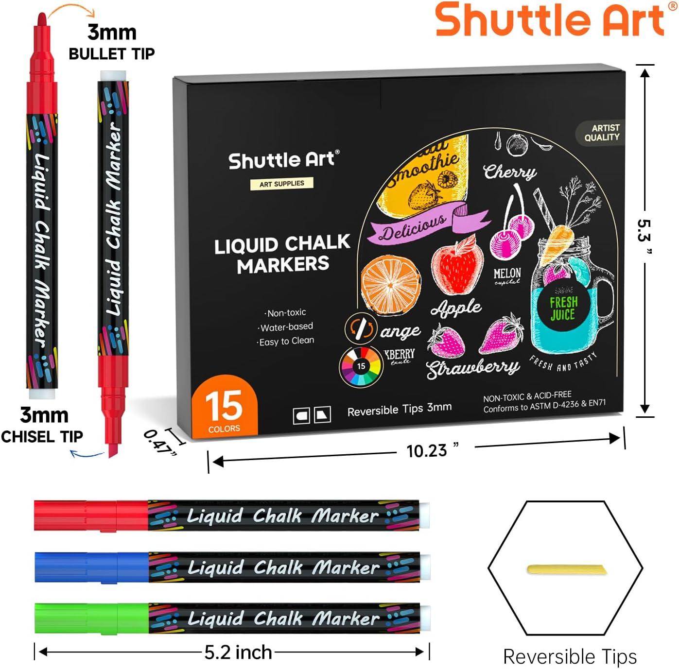 Shuttle Art Chalk Markers, 15 Vibrant Colors Liquid Chalk Markers Pens for Chalkboards, Windows, Glass, Cars, Water-based, Erasable, Reversible 3mm Fine Tip for Office Home Supplies(15 Colors)