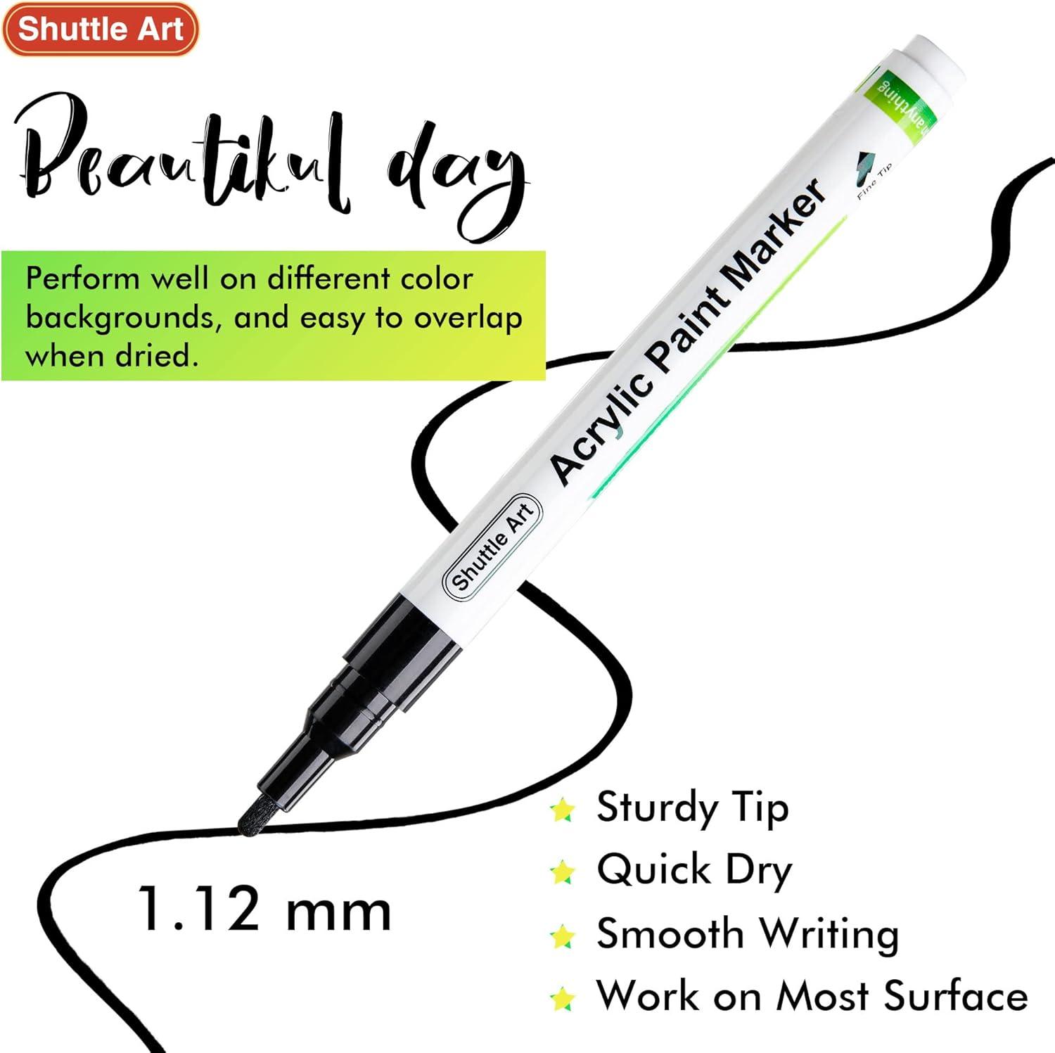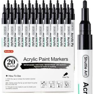 - Get a free gift with your purchase of Shuttle Art 20 Pack Black Fine Tip Acrylic Paint Pens, Water-Based Quick Dry Paint Markers for Rock, Wood, Metal, Plastic, Glass, Canvas, Ceramic(20 Pack Black). Limited quantities available!