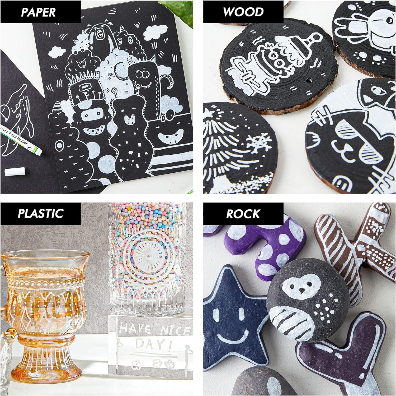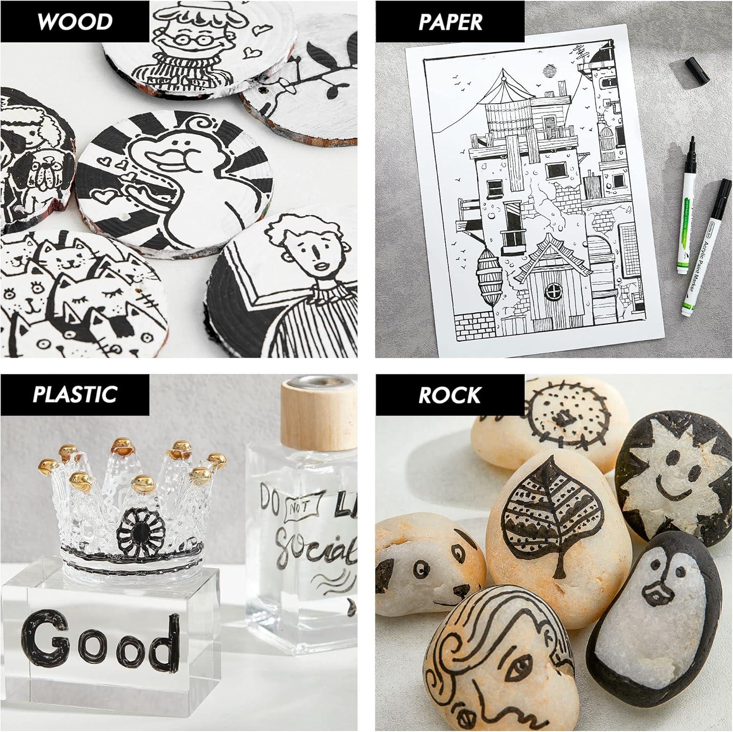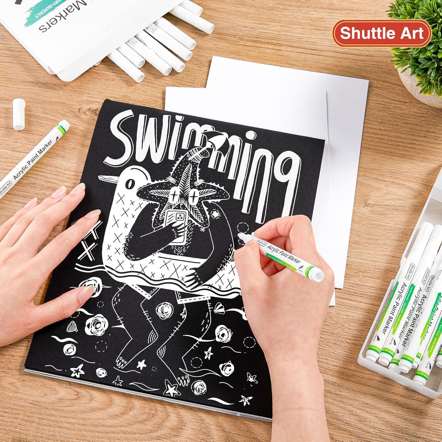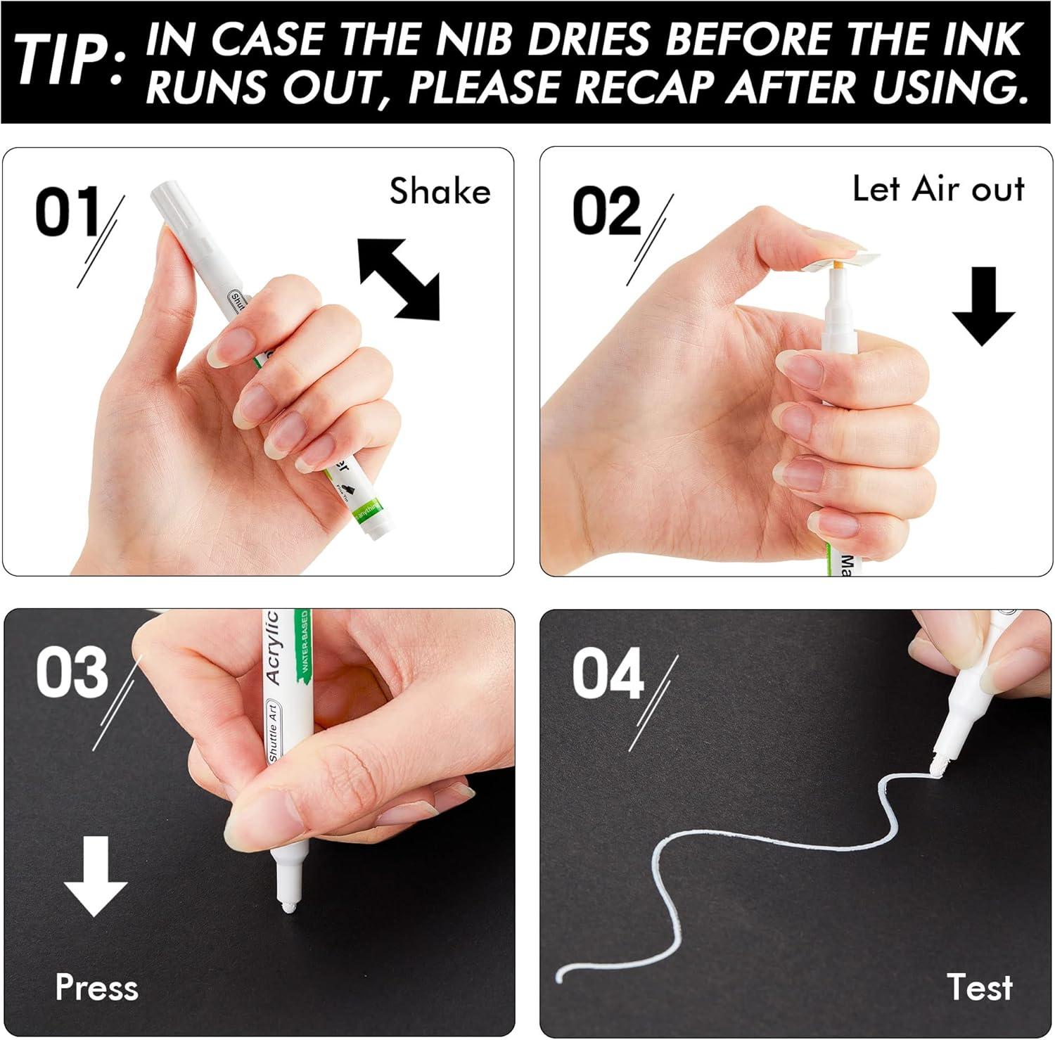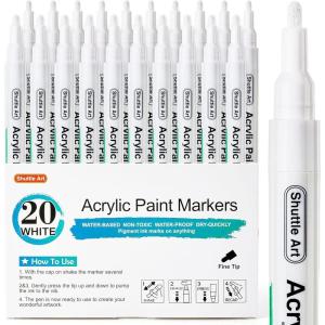 Shuttle Art 20 Pack Black Fine Tip Acrylic Paint Pens, Water-Based Quick Dry Paint Markers for Rock, Wood, Metal, Plastic, Glass, Canvas, Ceramic(20 Pack White)