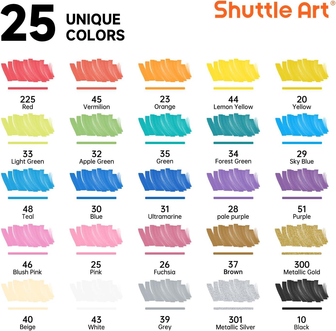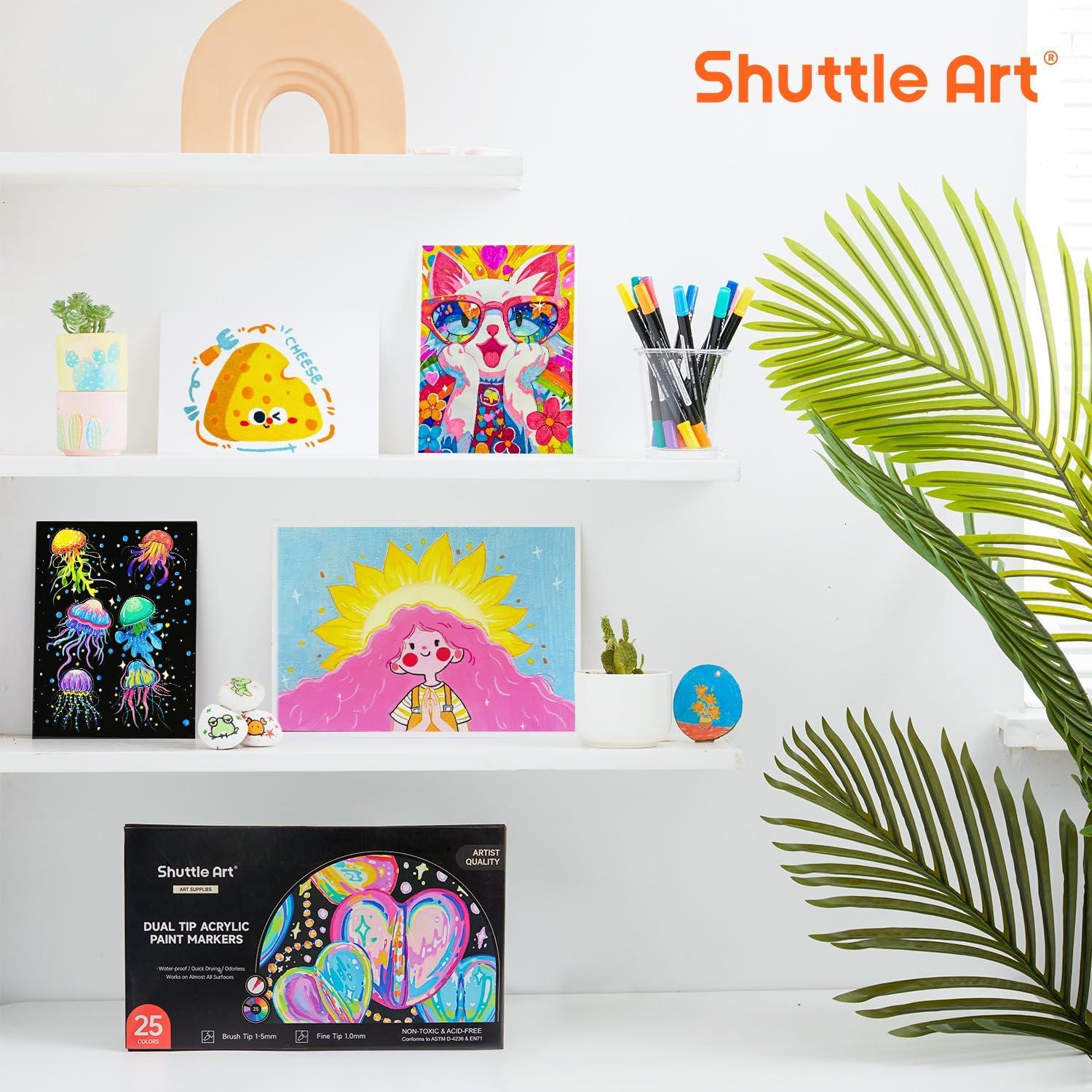 Shuttle Art 25 Colors Dual Tip Acrylic Paint Markers, Brush Tip and Fine Tip Acrylic Paint Pens for Rock Painting, Ceramic, Wood, Canvas, Plastic, Glass, Stone, Calligraphy, Card Making, DIY Crafts