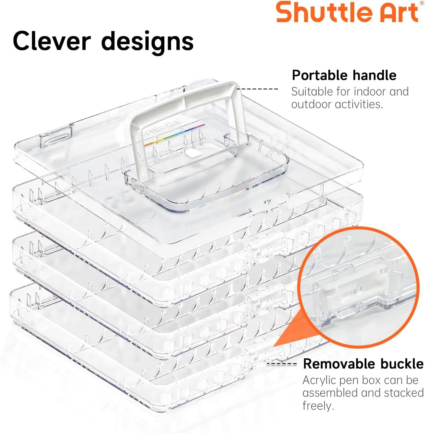 Shuttle Art 36 Markers Acrylic Marker Organizer, Portable 3-Layer Transparent Storage Box, Stackable Pen Holder for Art Supplies,Ideal for Home, Office & School Desk Organization