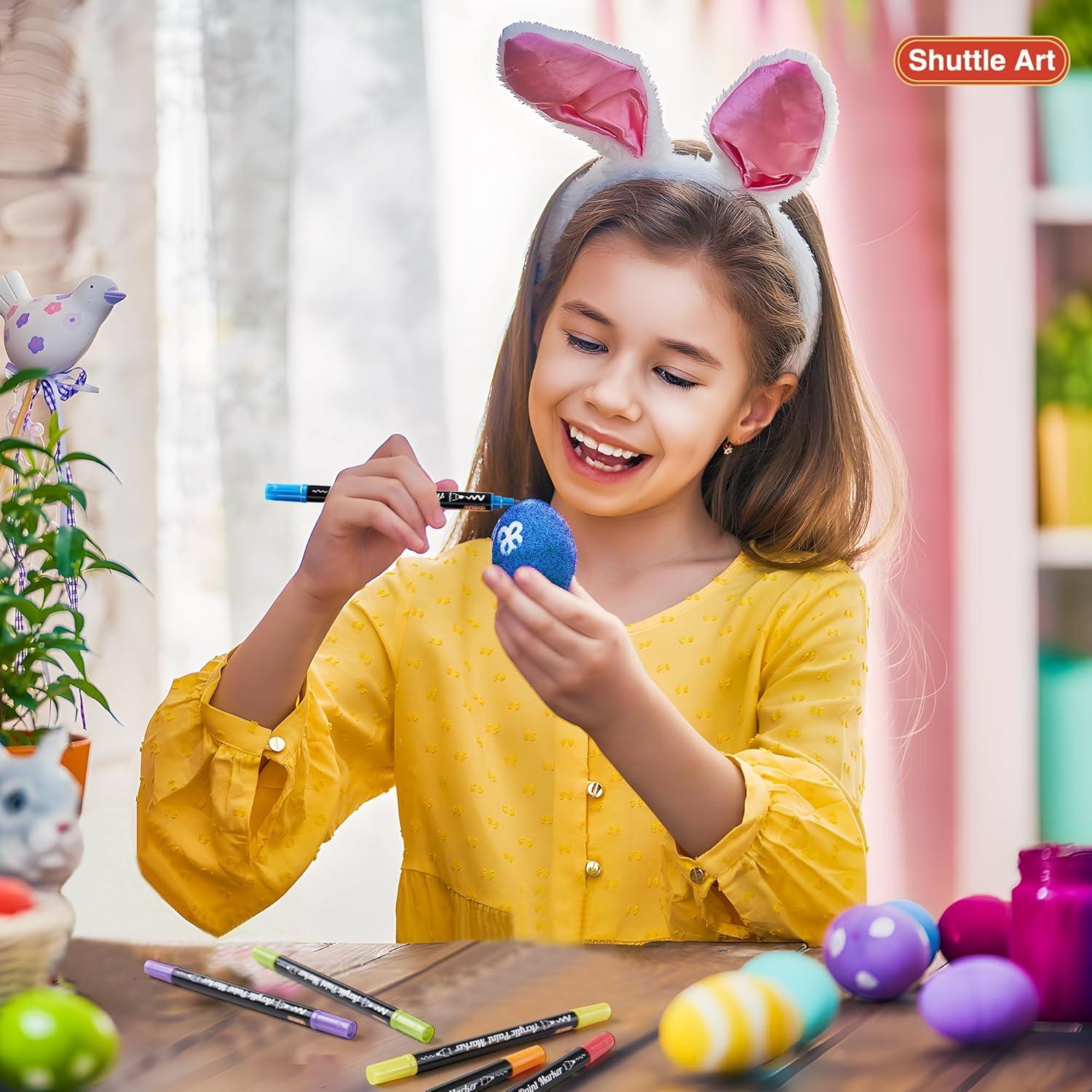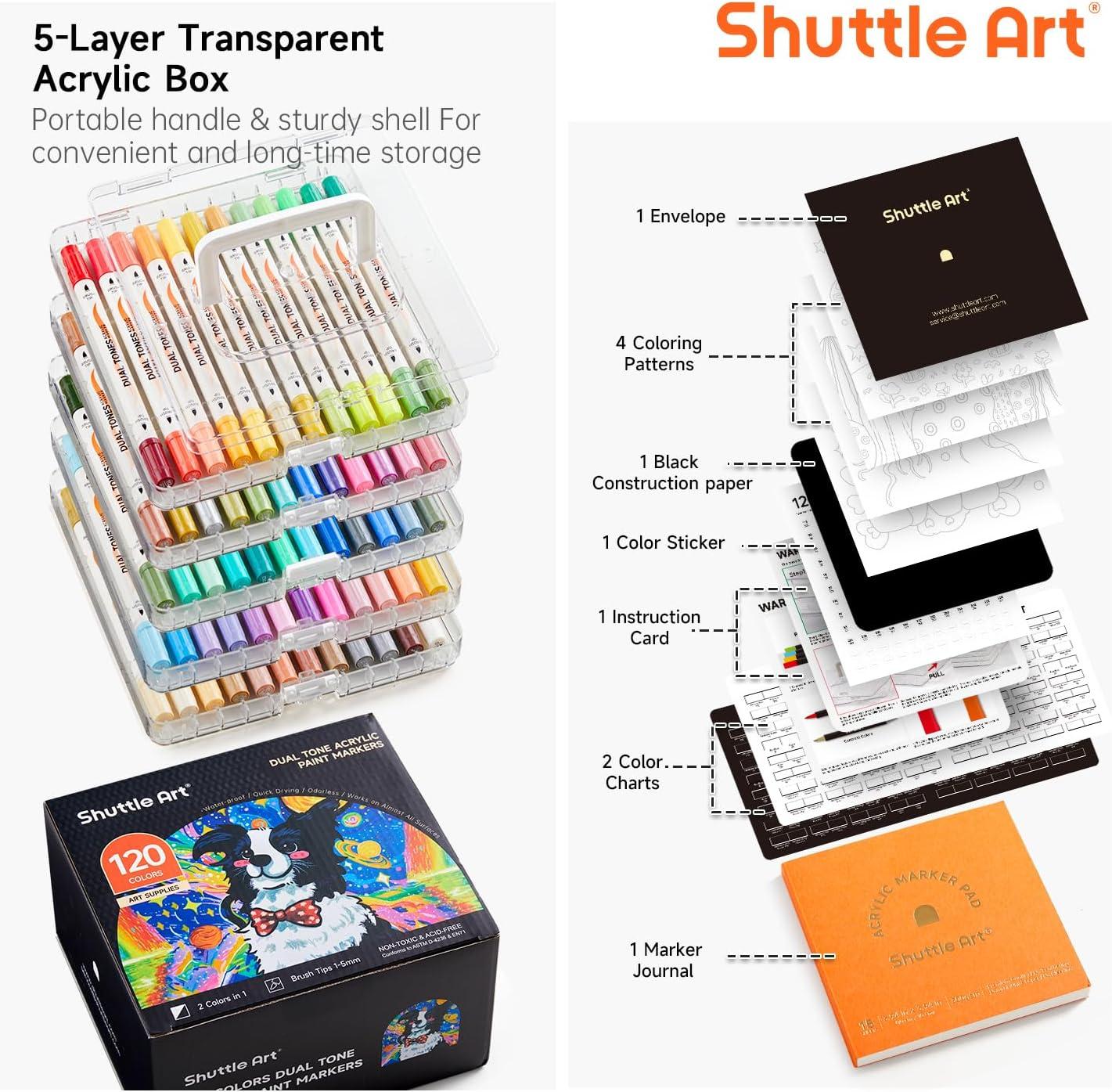 Shuttle Art 60 Pack Dual Tone Acrylic Paint Markers, 120 Colors Acrylic Paint Pens for Rock Painting, Ceramic, Wood, Canvas, Glass, Stone, Fabric, Card Making, DIY & Art Supplies(60 Pack 120 Colors)