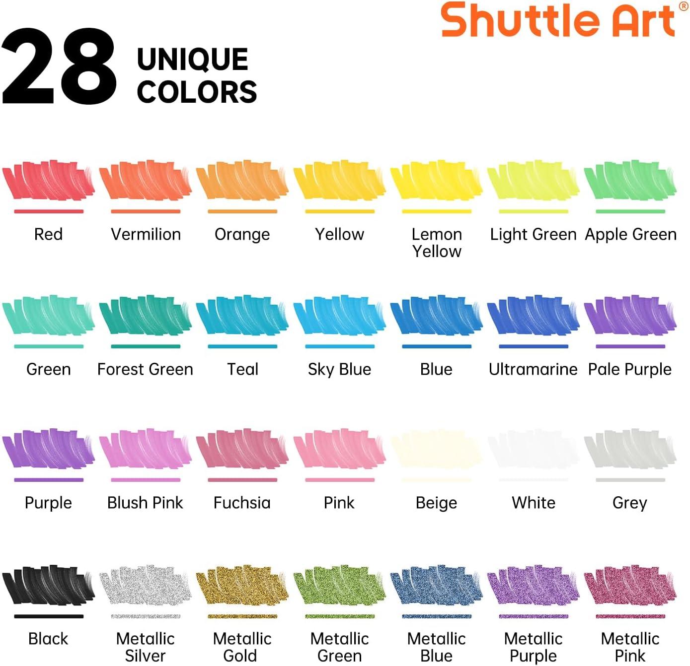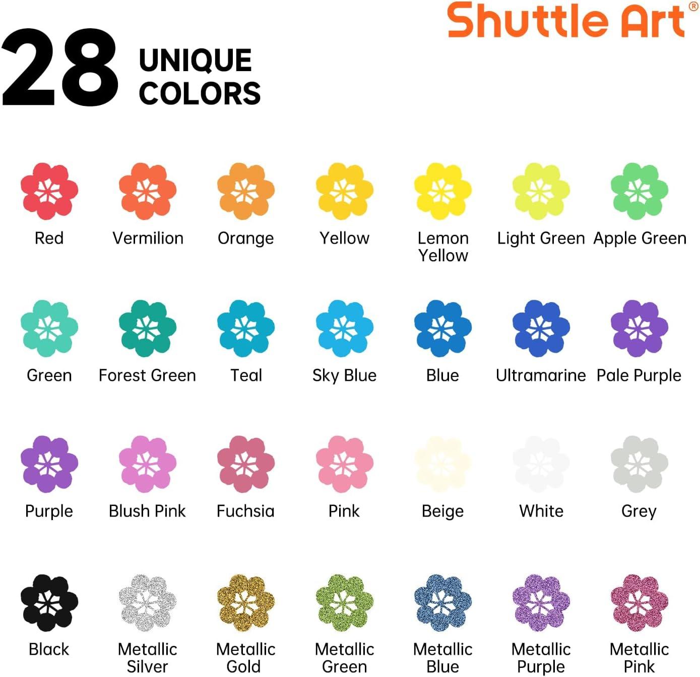 Shuttle Art Automatic Ink Control Acrylic Paint Markers, 60 Colors Brush Tip Acrylic Paint Pens for Rock Painting, Ceramic, Wood, Canvas, Glass, Stone, Fabric, Card Making, DIY & Art Supplies(28 Metallic Colrs)