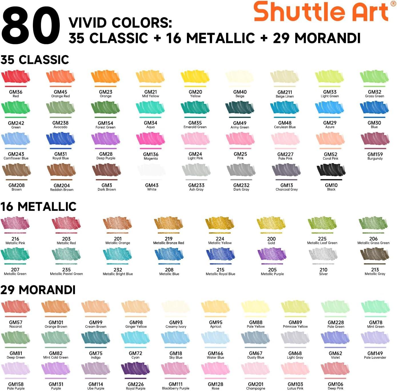 Shuttle Art 80 Colors Dual Tip Acrylic Paint Markers, Brush Tip and Fine Tip Acrylic Paint Pens for Rock Painting, Ceramic, Wood, Canvas, Plastic, Glass, Stone, Calligraphy, Card Making, DIY Crafts(Assorted)