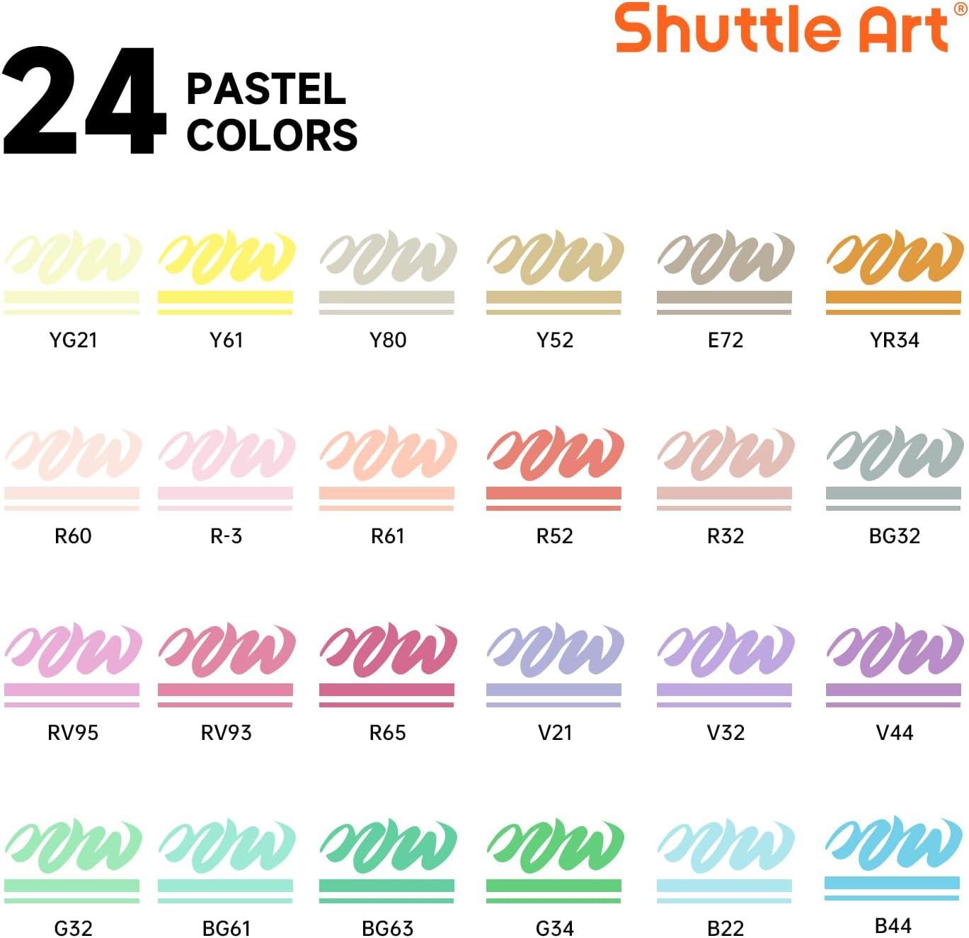 Shuttle Art Automatic Ink Control Acrylic Paint Markers, 60 Colors Brush Tip Acrylic Paint Pens for Rock Painting, Ceramic, Wood, Canvas, Glass, Stone, Fabric, Card Making, DIY & Art Supplies(24 Pastel Colors Brush Tip)