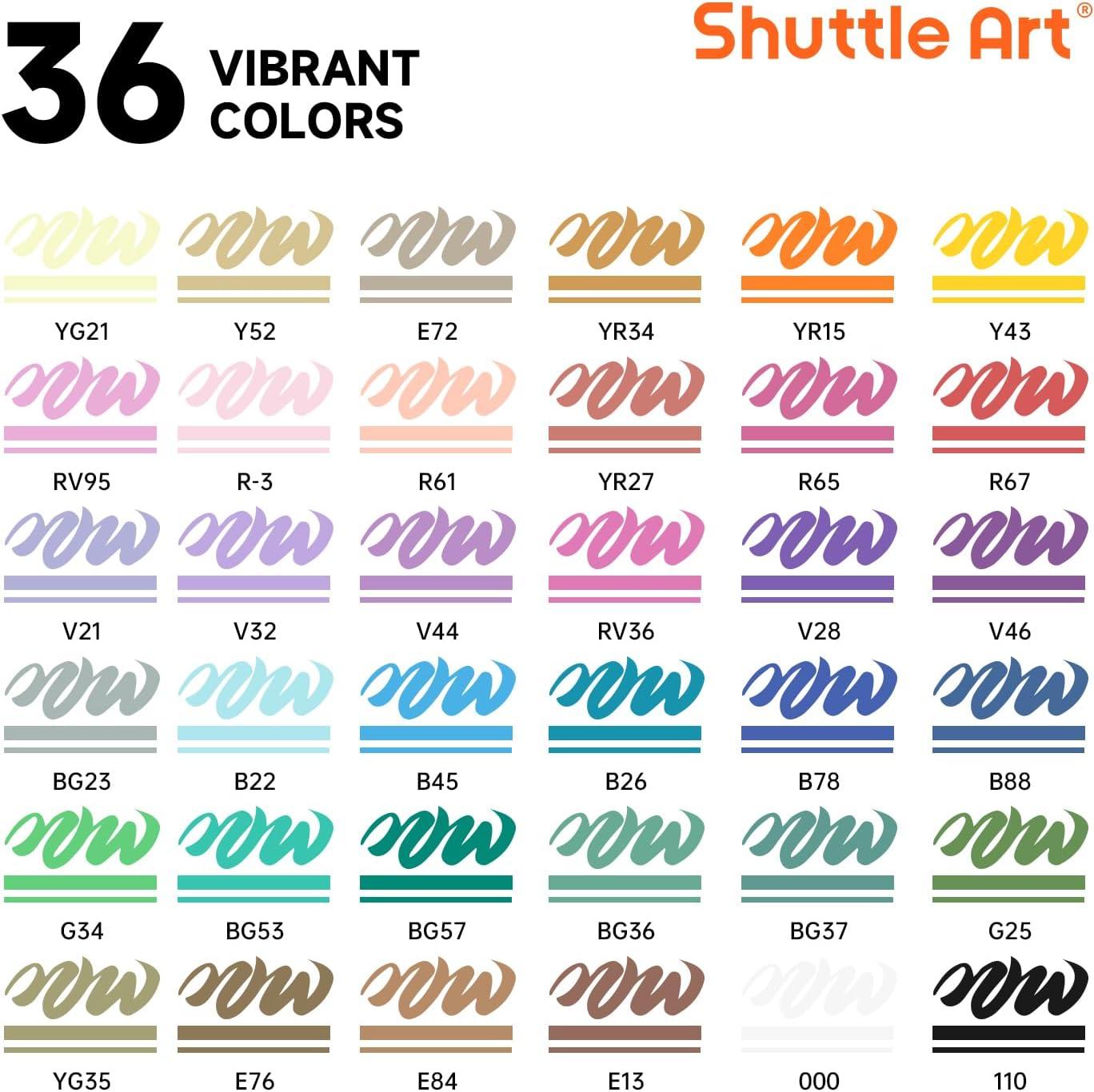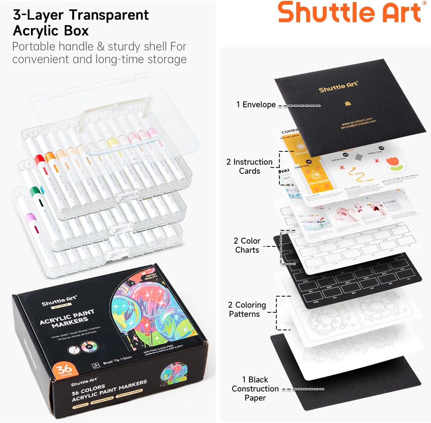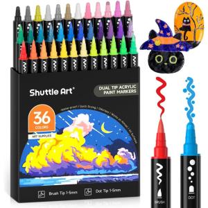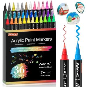 Shuttle Art Automatic Ink Control Acrylic Paint Markers, 60 Colors Brush Tip Acrylic Paint Pens for Rock Painting, Ceramic, Wood, Canvas, Glass, Stone, Fabric, Card Making, DIY & Art Supplies(36 Colors Brush Tip)