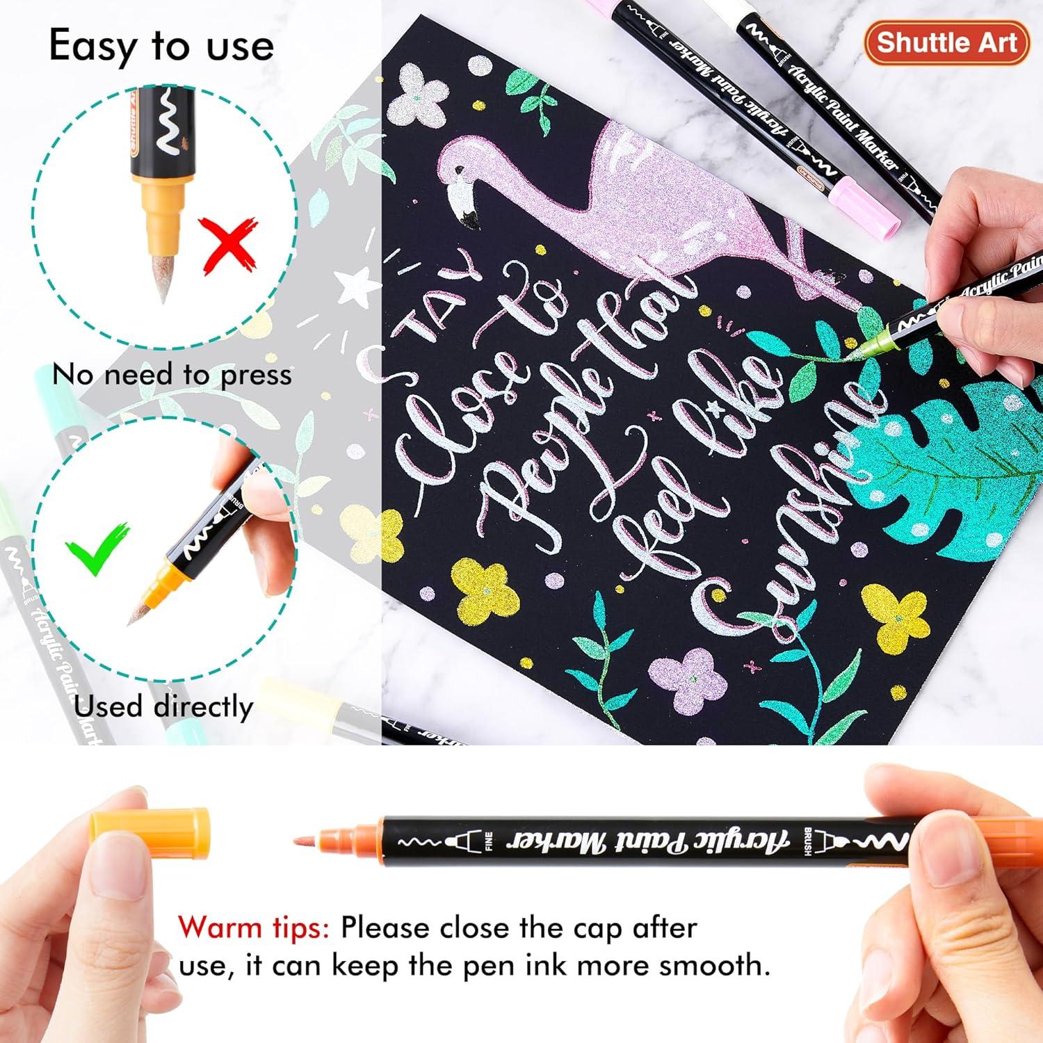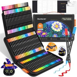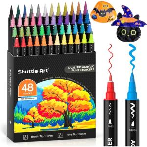 - Get up to 60% off on Shuttle Art 80 Colors Dual Tip Acrylic Paint Markers, Brush Tip and Fine Tip Acrylic Paint Pens for Rock Painting, Ceramic, Wood, Canvas, Plastic, Glass, Stone, Calligraphy, Card Making, DIY Crafts(48 Colors Brush Tip & Fine Tip) styles during our winter sale event.