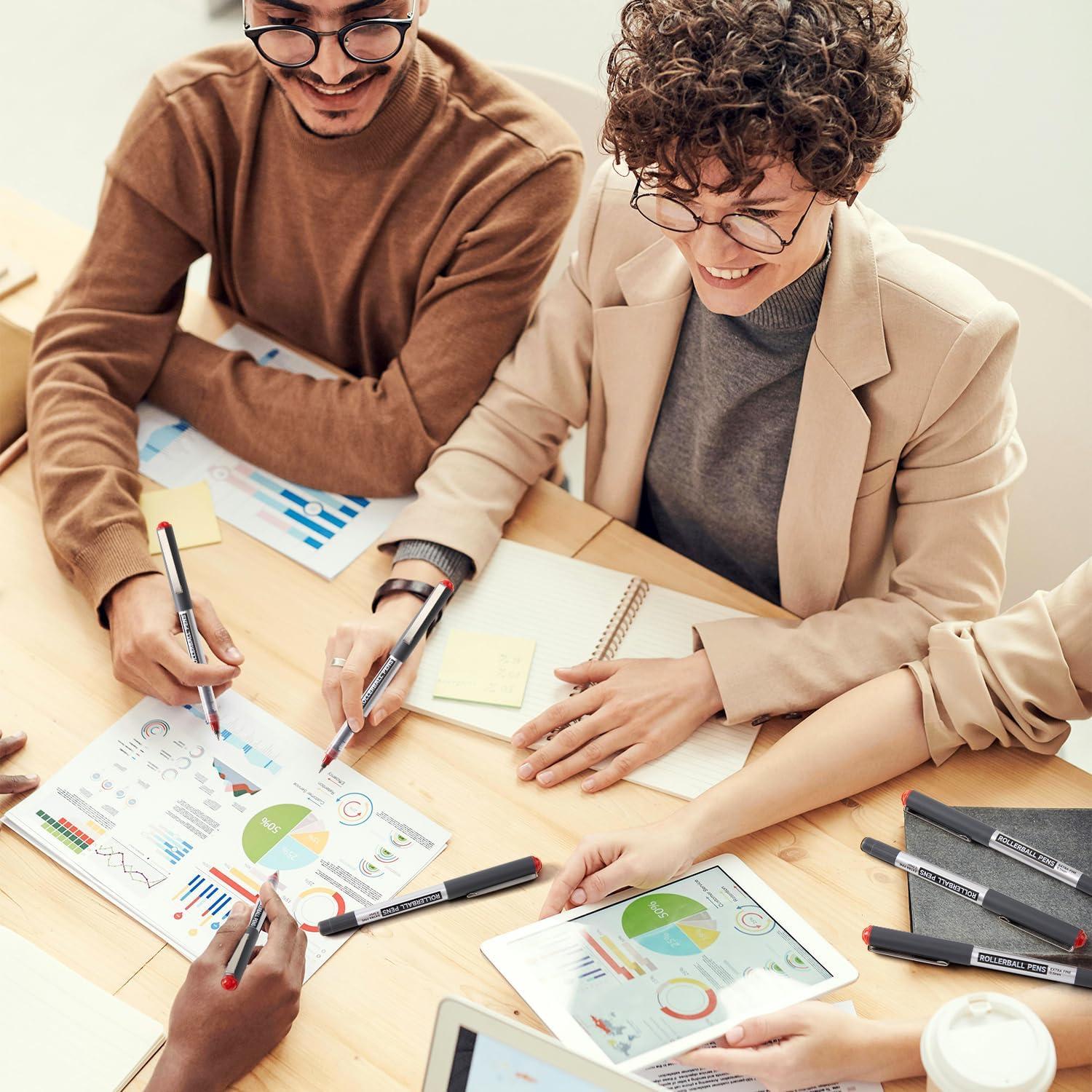 Shuttle Art RollerBall Pens, 50 Pack Black Fine Point Roller Ball Pens, 0.5mm Liquid Ink Pens for Writing Journaling Taking Notes School Office