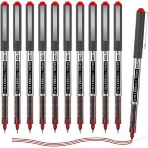Shuttle Art Rollerball Pens, 10 Pack Red Liquid Ink Pens, 0.5mm Extra Fine Point, Quick Drying for Writing Journaling Taking Notes School Office