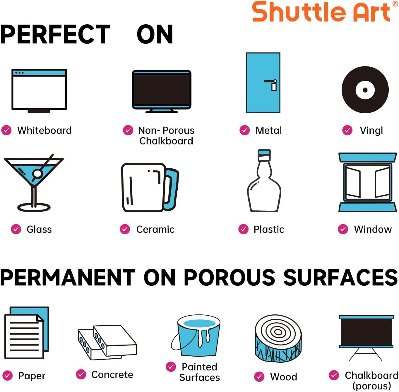 Shuttle Art Chalk Markers, 15 Vibrant Colors Liquid Chalk Markers Pens for Chalkboards, Windows, Glass, Cars, Water-based, Erasable, Reversible 3mm Fine Tip for Office Home Supplies(15 Colors)