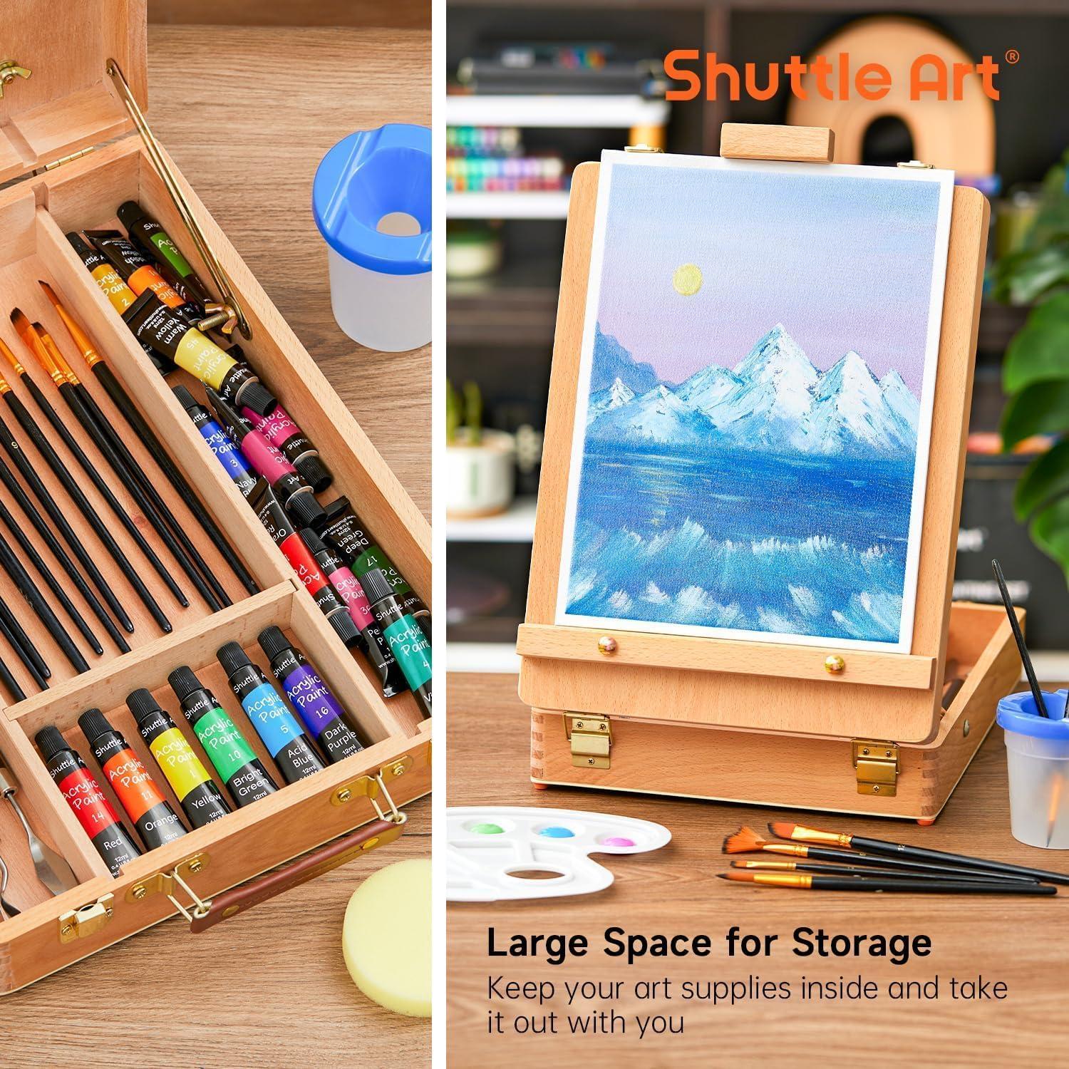 65 Pack Acrylic Paint Set, Shuttle Art Acrylic Painting Set with Wooden Easel, 30 Colors Acrylic Paint, Painting Canvas, Paint Brushes, Palettes, Art Painting Supplies for Kids Adults Beginner Artists