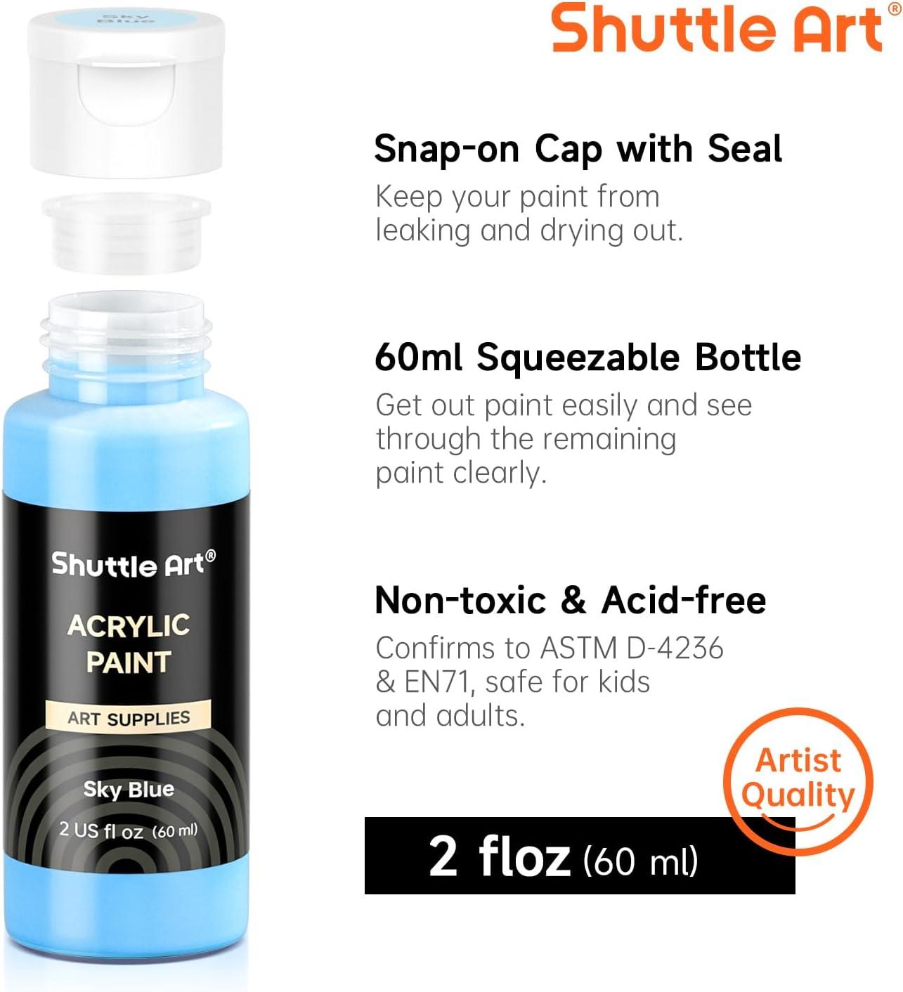 Shuttle Art 100 Colors Acrylic Paint, 2oz/60ml Bottles, Include 2 Sets of 12 Paint Brushes, 1 Art Sponge & Palette, Premium for Artists, Beginners & Kids on Canvas Rocks Wood Ceramic(Regular)