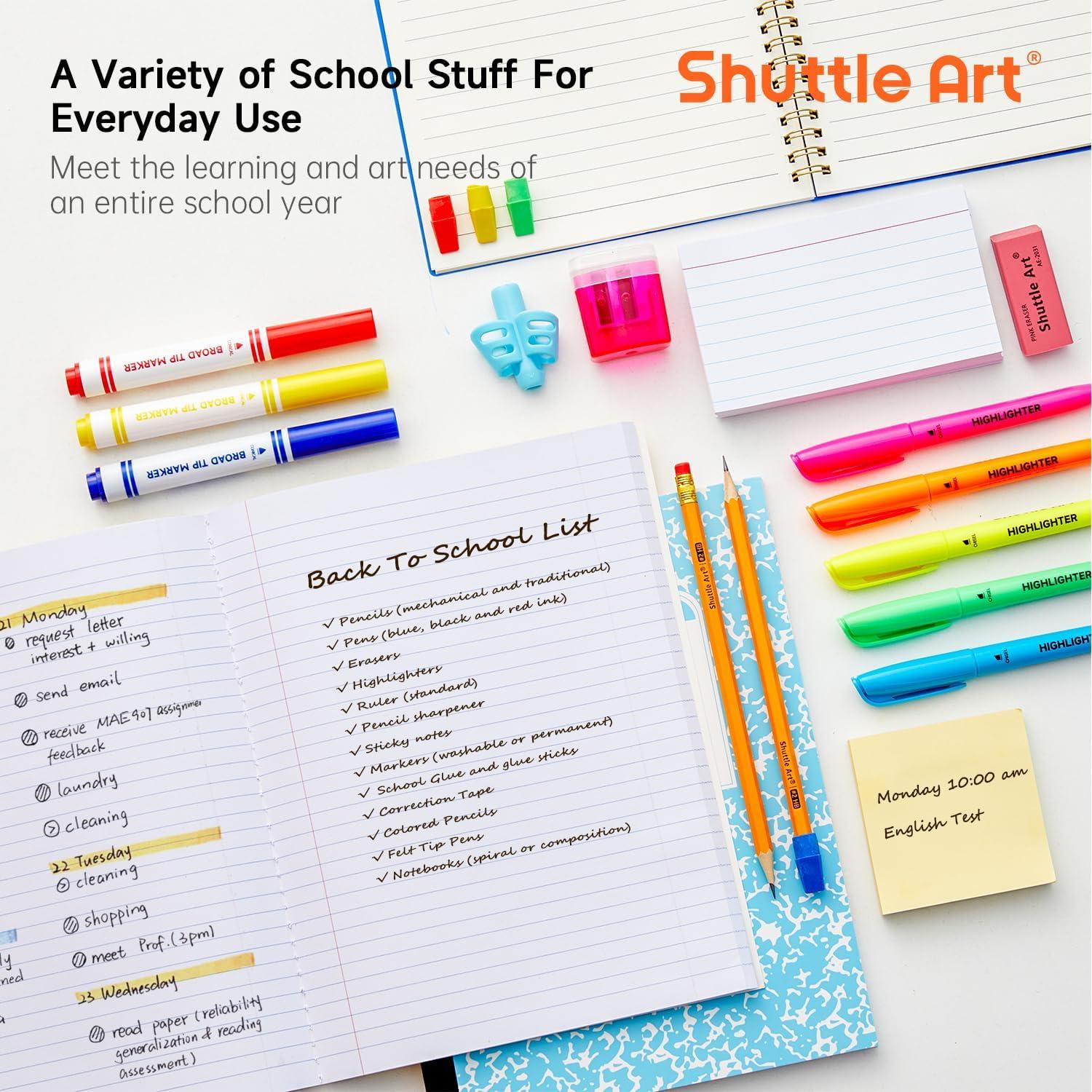 102 PCS ALL-IN-ONE KIT: Shuttle Art 102 pieces back to school supplies kit includes all the school supplies for grade K-12 school students and teachers, a great mix of writing, crafting, and organizing supplies for a successful school year. (WARNING: CHOKING HAZARD—Small parts, not for children 3 yrs and under.)