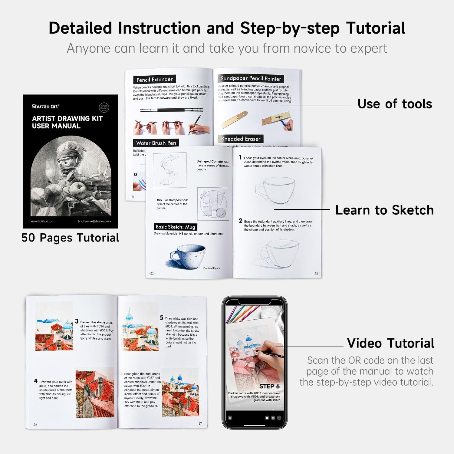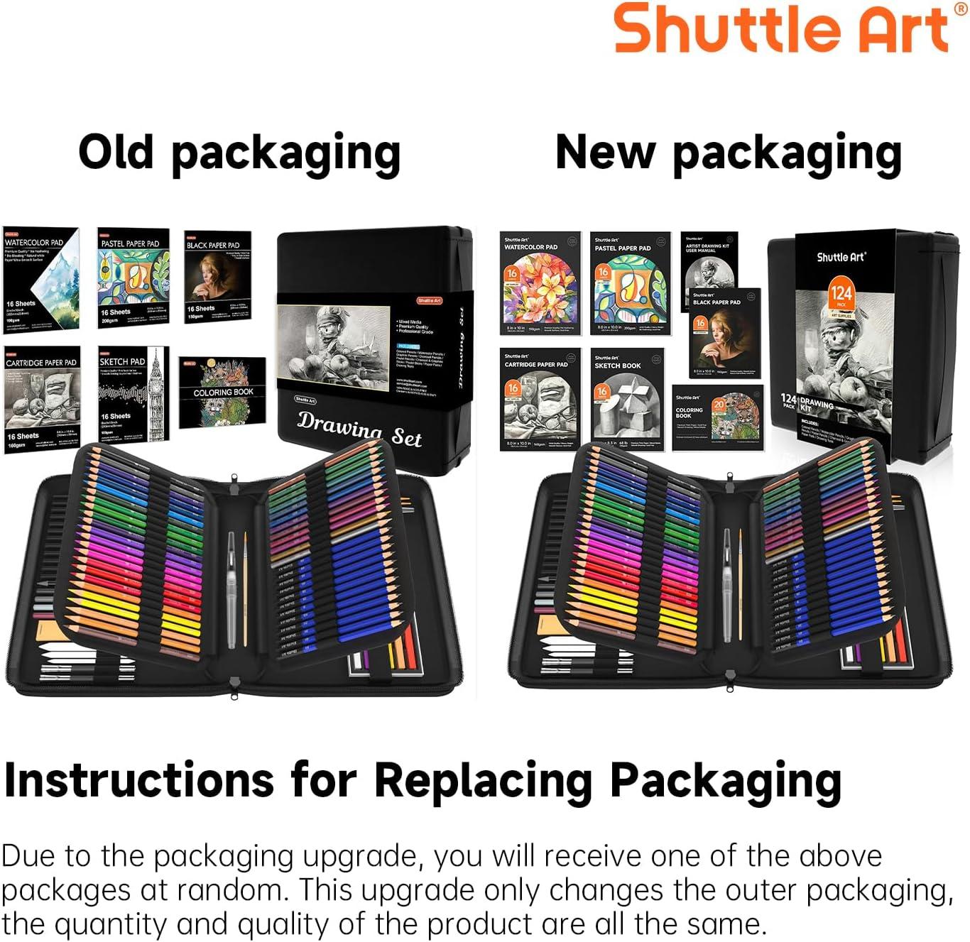 Shuttle Art 124 PCS Drawing Kit, Professional Drawing Supplies with Sketch, Charcoal, Colored, Graphite, Pastel Pencils & Sticks, Complete Drawing Tools and Paper Pads in Zipper Case for Artists&Kids(124)