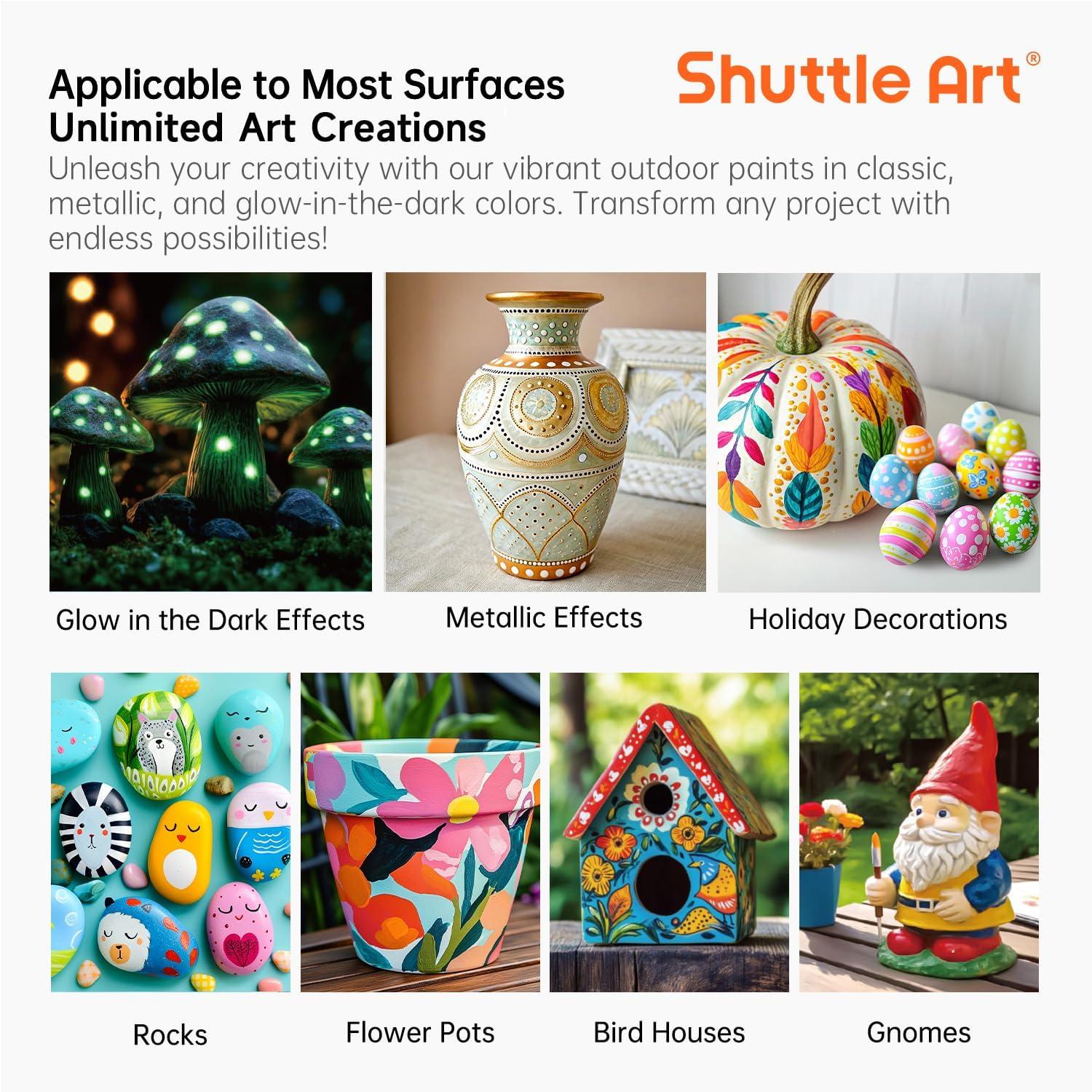 EXCEPTIONAL OUTDOOR PERFORMANCE: Shuttle Art outdoor acrylic paints offer superior water resistance and coverage, ensuring your artwork stays vibrant and intact in outdoor conditions, from sun exposure to rain. Compared to regular acrylic paints, specialised outdoor paints provide better waterproof, fade-resistant, and UV-resistant properties