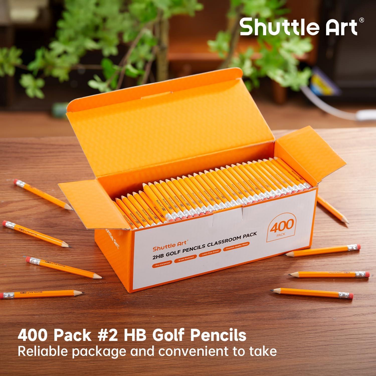 400 PACK GOLF PENCILS WITH ERASERS: Shuttle Art #2 HB half pencils are equipped with end erasers and come pre-sharpened, making them ideal for use in schools, offices, homes, and clubs to support daily pencil consumption