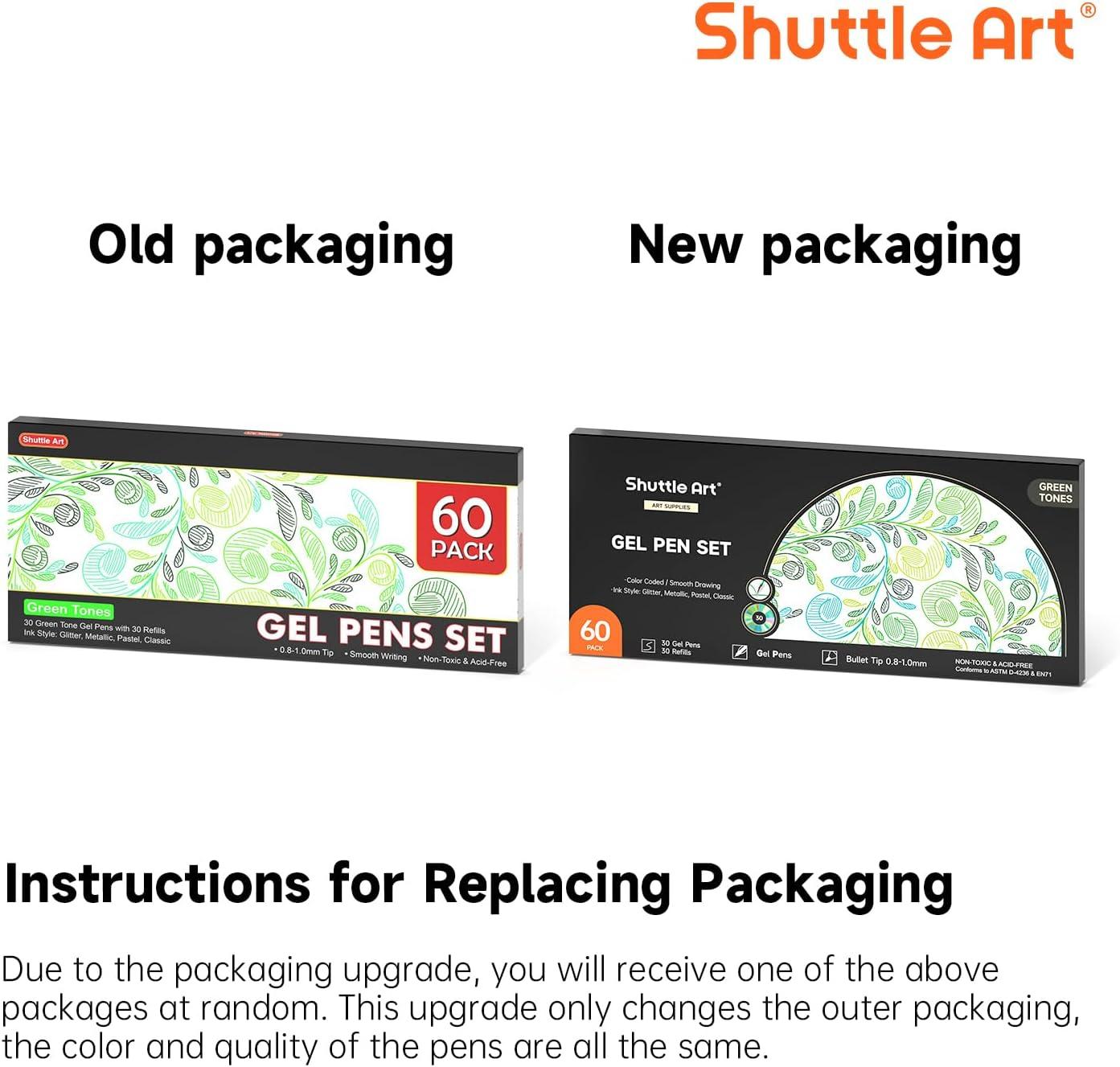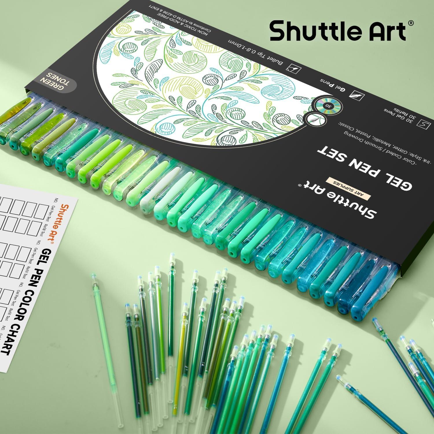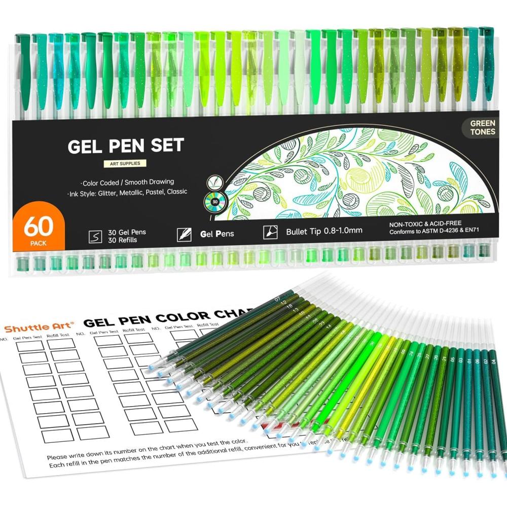 Shuttle Art 60 Pack Tone , Pink Purple Gel Pens with 30 Refills for Adults Coloring Books Journaling Drawing Nature, Landscapes, Animals Scenes(60 Pack Green Tone)