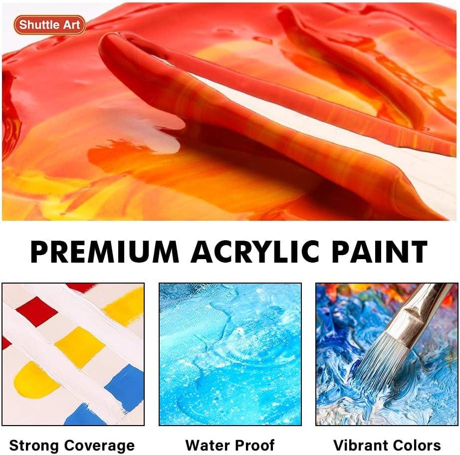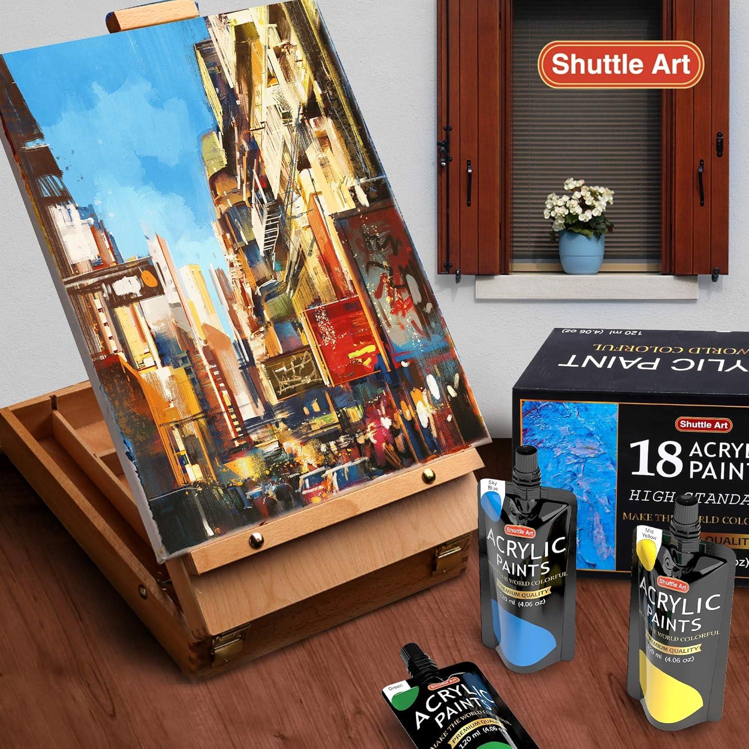 ACRYLIC PAINT SET: Shuttle Art acrylic paint set contains 18 classic colors acrylic paint in pouches (120/4oz) and 20 colors metallic acrylic paint in bottles (60ml/2oz), which is a great set for artists to create and innovate.