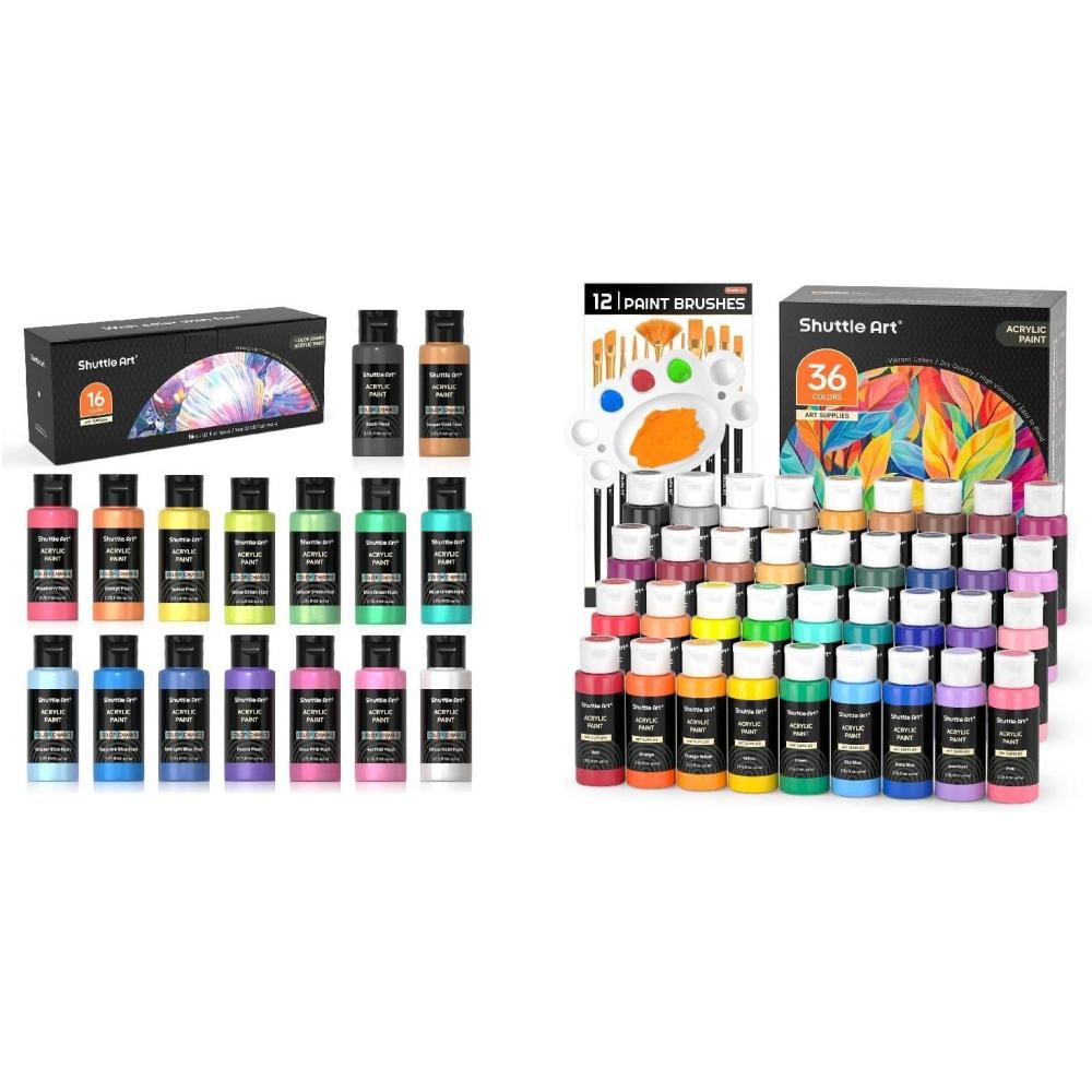 ACRYLIC PAINT SET: Shuttle Art acrylic paint set contains 36 colors acrylic paint in bottles (60ml/2oz) and 16 iridescent colors Color Change acrylic paint in bottles (60ml/2oz), which is a great set for artists to create and innovate.