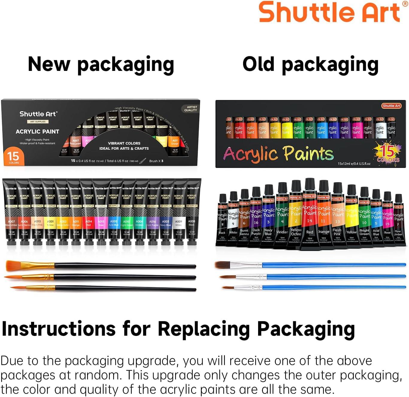VIBRANT ACRYLIC PAINTS : Shuttle Art 15 Acrylic Paint Set consists of 15 vibrant assorted colors and with BONUS 3 FREE PAINT BRUSHES. Each tube is filled with 12 ml (0.4 oz) paints with rich pigments that are professional artist quality