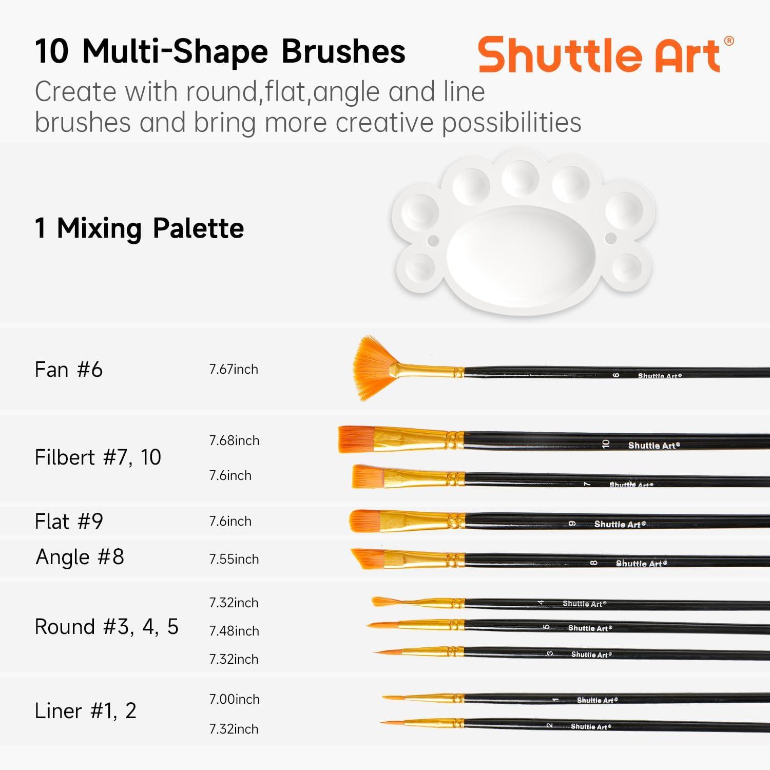 36 VIBRANT COLORS: Shuttle Art 36 colors acrylic paint set contains 36 unique colors highly pigmented paints, including classic metallic gold and silver, also comes with 10 brushes and 1 palette, when you receive this art painting kit you can paint right way!
