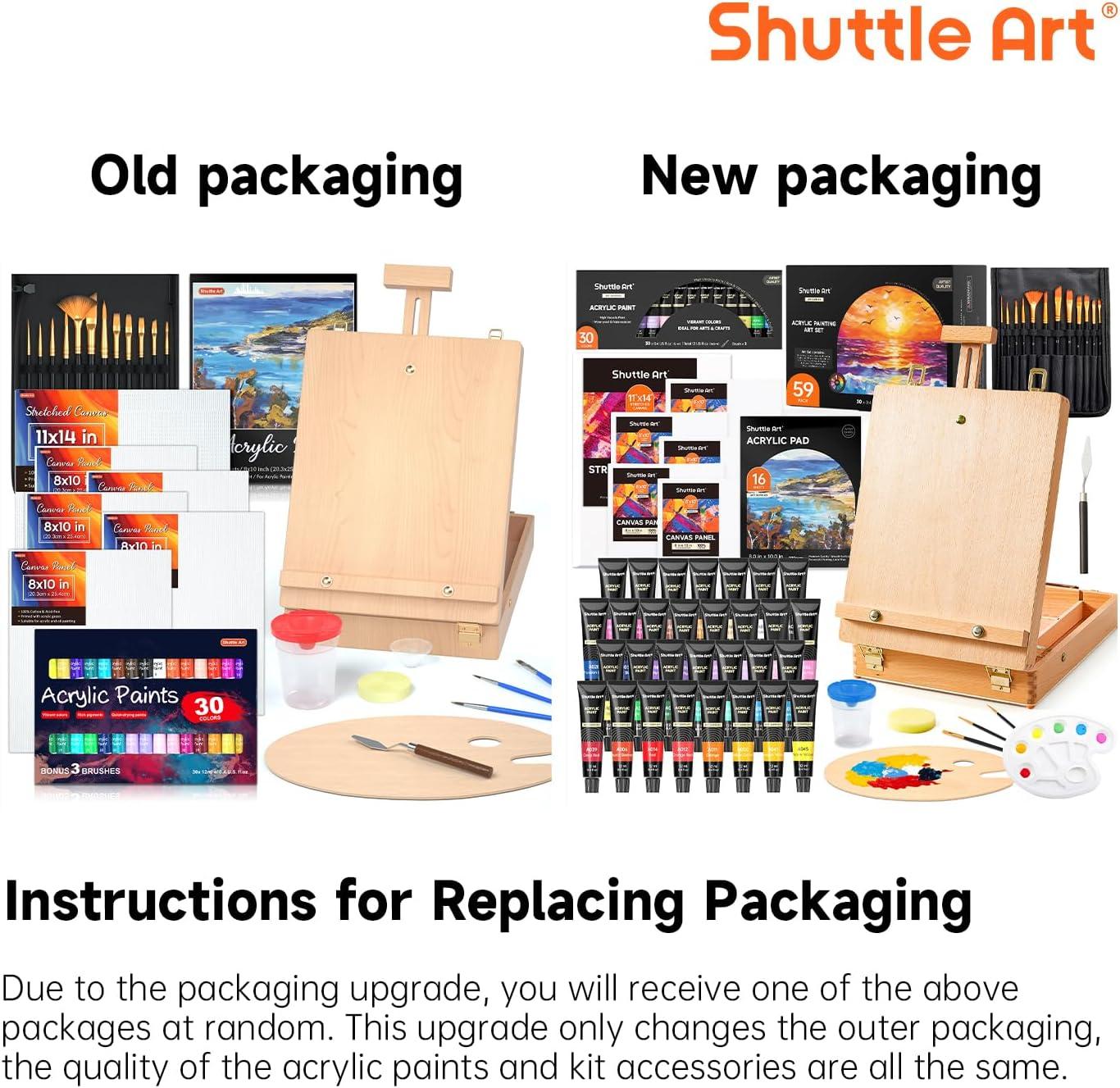 Shuttle Art Acrylic Painting Set, 59 Pack Professional Painting Supplies with Wood Tabletop Easel, 30 Colors Acrylic Paint, Canvas, Brushes, Palette, Complete Painting Kit for Kids, Adults, Artists