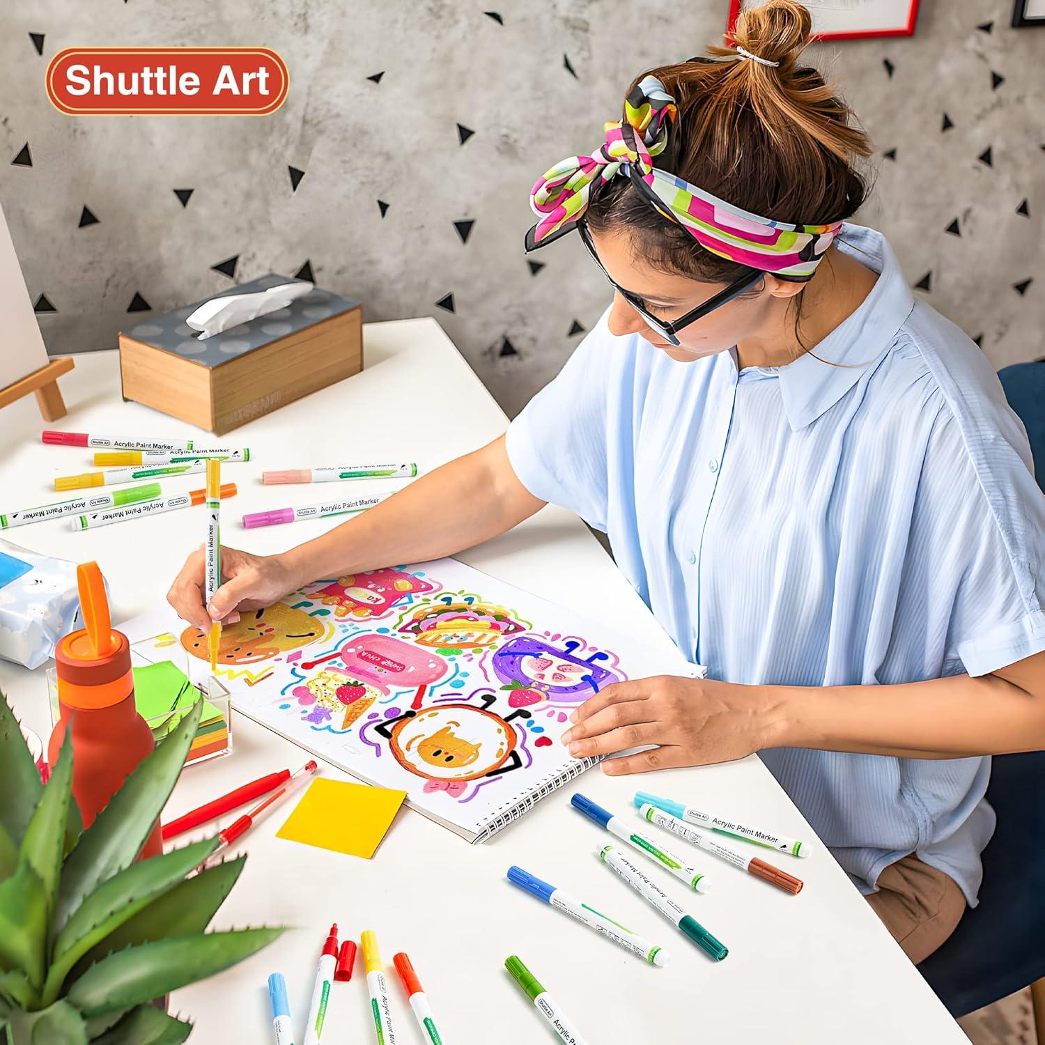 【60 Colors & Convenient Accessories】: Shuttle Art acrylic paint markers set comes with 60 vibrant color options to choose from, rich primary and complementary colors, equipped with high-quality ink, waterproof and fade-resistant, perfect for your multi-color needs. The marker set also contains a portable box, 2 color charts and 4 coloring patterns, all for your easy identification and organization when choosing the right color, a hassle-free choice for your creating.
