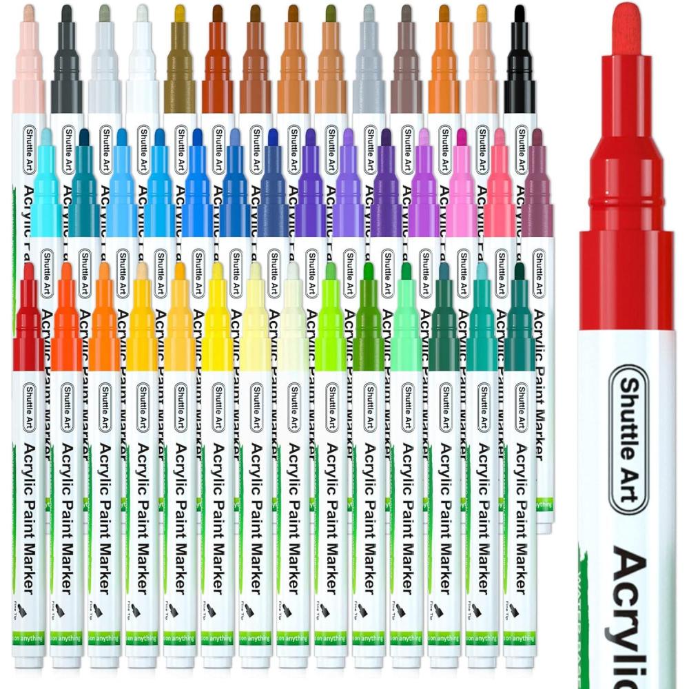 Shuttle Art Automatic Ink Control Acrylic Paint Markers, 60 Colors Brush Tip Acrylic Paint Pens for Rock Painting, Ceramic, Wood, Canvas, Glass, Stone, Fabric, Card Making, DIY & Art Supplies(42 Colors)