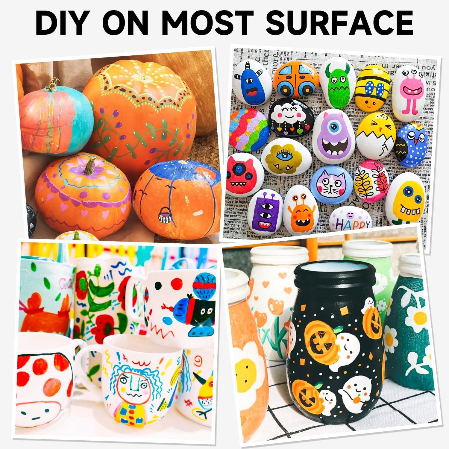 【Flexible Tip for Limitless Creativity】:Brush tips of 1~5mm writing width, allow you to create different strokes by changing the brush pressure, meet your needs both for detail outlining and large area coloring. High-quality brush tip is more friction-resistant than ordinary cotton nibs, no linting, long-lasting and suitable for almost any surface, like stone, mugs, glass, wood, metal, etc. Best choice for Halloween and Christmas decorations, Calligraphy lettering, birthday gifts and more.