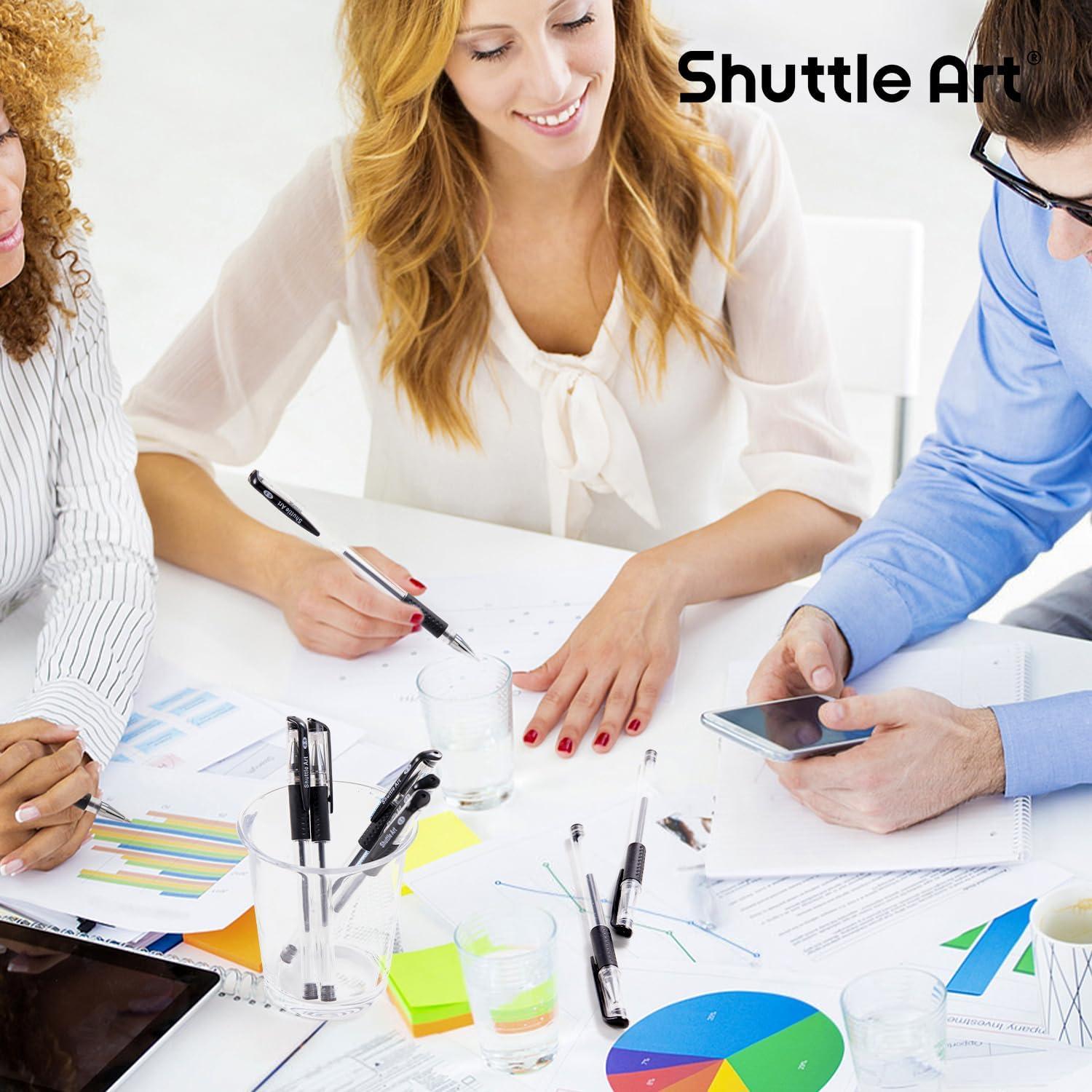 PREMIUM DESIGN: Shuttle Art black gel pens with comfortable rubber grips are easy to hold. Durable clip makes it convenient to carry with. Detachable cap prevents ink from drying out and transparent barrel helps you see how much ink is remaining.