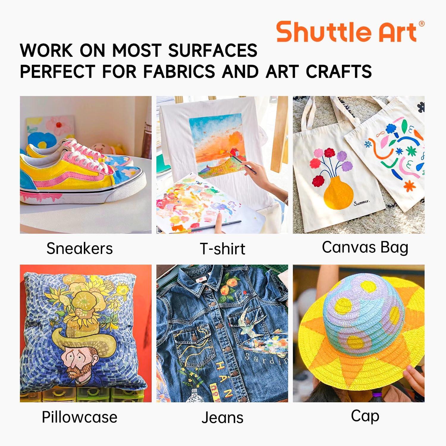 PERMANENT & WASHER SAFE : Easy to blend and cover, stay permanent and won’t crack or peel, durable enough to hold up extensive wear and repeated washes in the washing machine and dryer. Shuttle Art clothing paints are also ready to use, do not need extra textile medium or heating