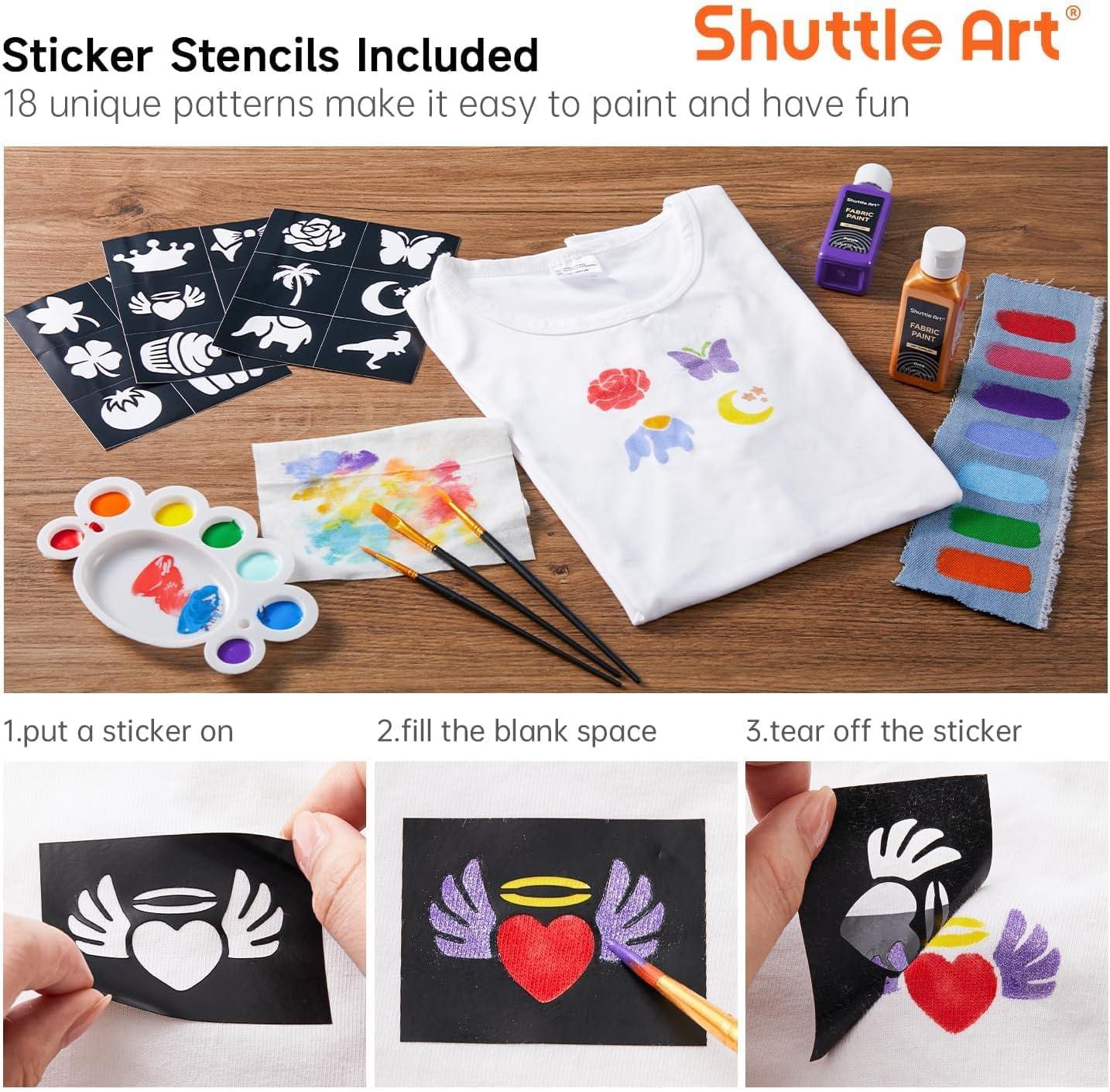 Shuttle Art Fabric Paint 24 Colors Permanent Soft Fabric Paint in Bottles (60ml/2oz) with Brushes &Stencils, Non-Toxic Textile Paint for T-Shirts, Shoes, Jeans, Bags, DIY Projects & Crafts(Regular)
