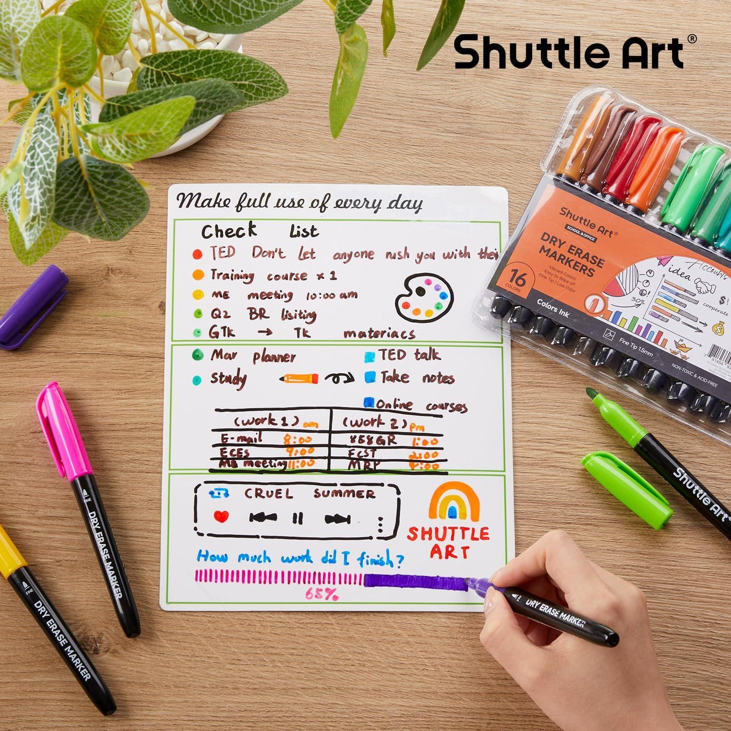 Shuttle Art Magnetic Whiteboard Markers, 20 Pieces Fine Tip and Eraser, Dry Erase Whiteboard Markers, for Writing on Whiteboards, Weekly Planner, Glass for School Office Home(16 Colors)