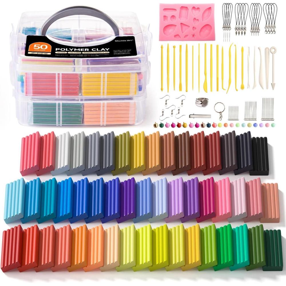 Shuttle Art Polymer Clay Kit – 60 Colors, 19 Tools, and 16 Accessories – Non-Toxic and Non-Sticky DIY Crafts for Kids and Adults(50 colours)