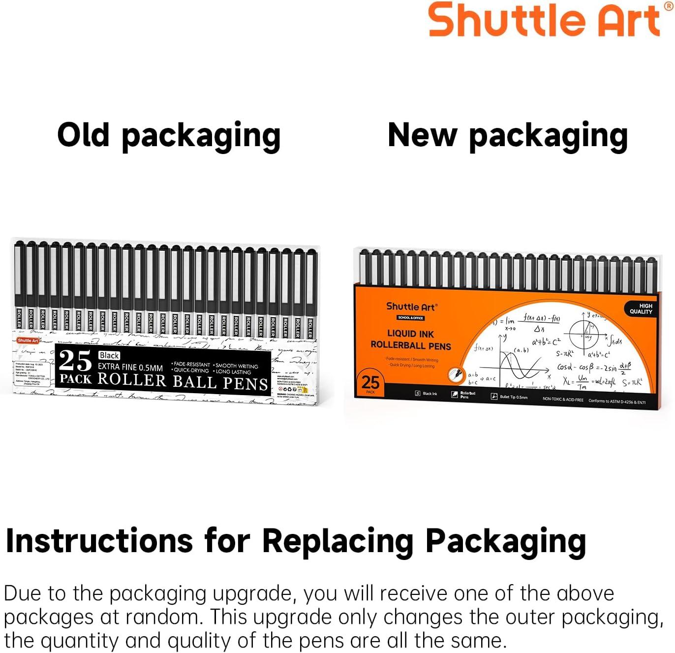 CONVENIENT VALUE PACK: Shuttle Art 25 pack 0.5mm roller ball pens are all with black ink. 25 Combo Pack will fully meet your demands of daily writing, marking and signing.