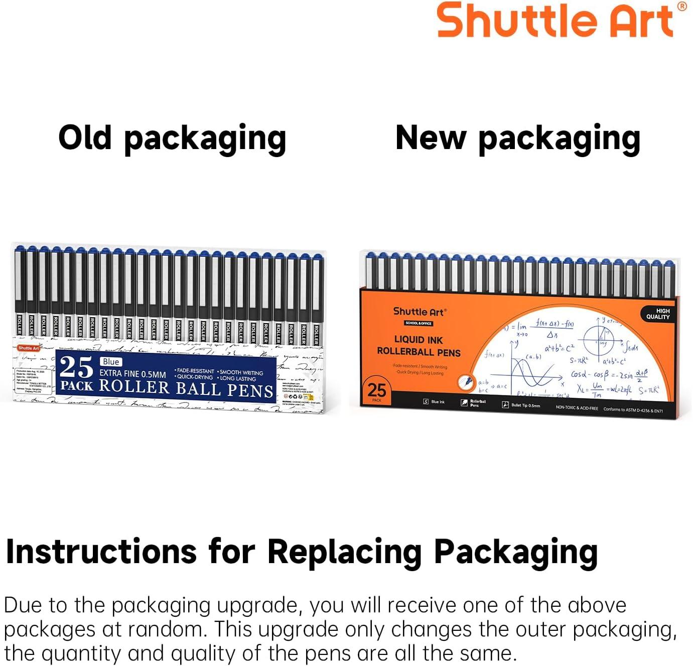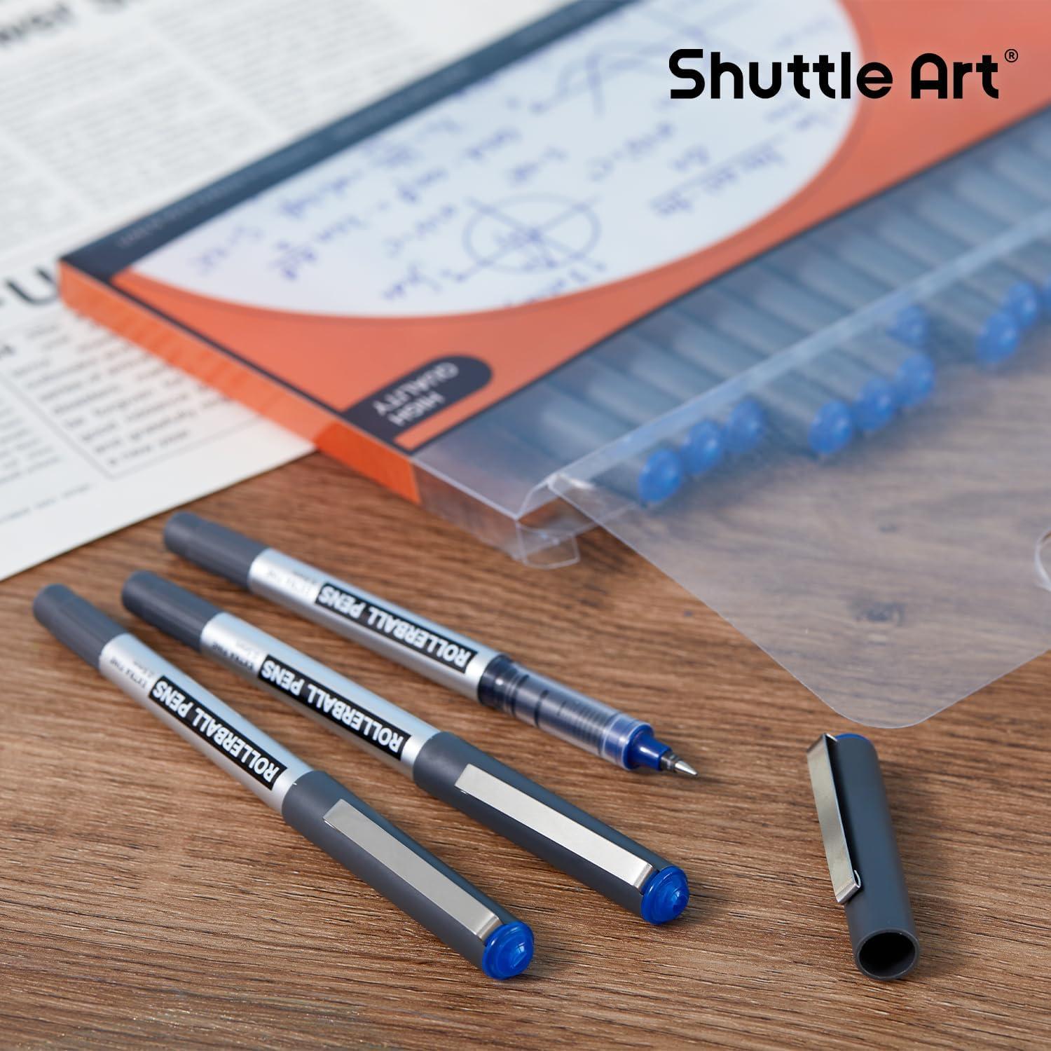 CONVENIENT VALUE PACK: Shuttle Art 25 pack 0.5mm roller ball pens are all with blue ink. 25 Combo Pack will fully meet your demands of daily writing, marking and signing.