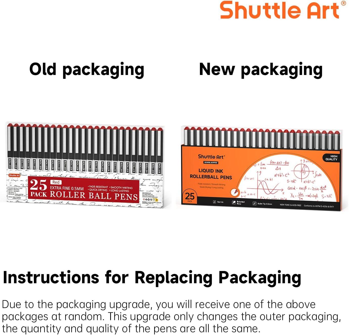 CONVENIENT VALUE PACK: Shuttle Art 25 pack 0.5mm roller ball pens are all with red ink. 25 Combo Pack will fully meet your demands of daily writing, marking and signing.
