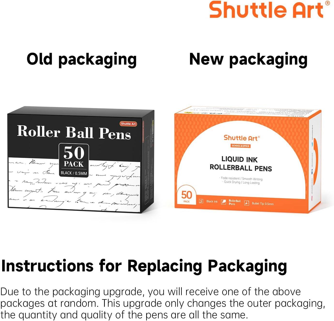 CONVENIENT VALUE PACK: Shuttle Art 50 pack 0.5mm roller ball pens are all with black ink. 50 Combo Pack will fully meet your demands of daily writing, marking and signing.