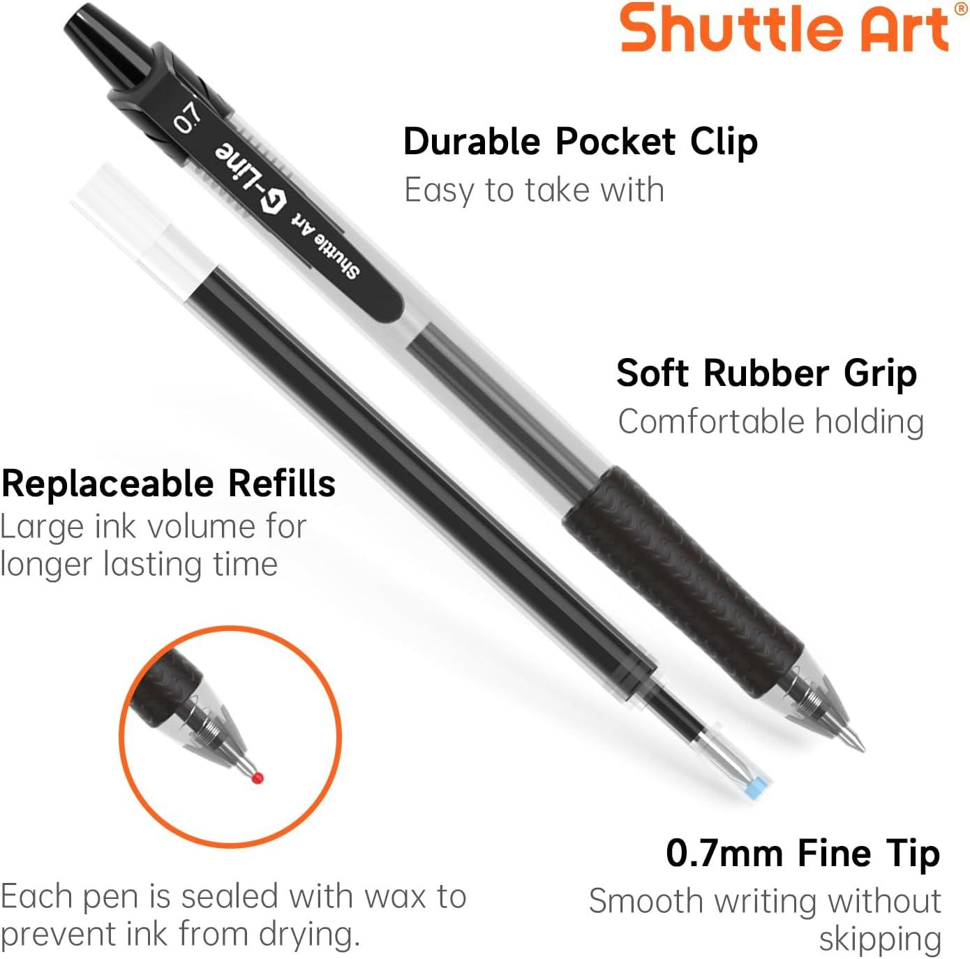 HIGH QUALITY: Shuttle Art 48 Pack Retractable Black Gel Ink Pens with Twice large ink volume ,Comfortable Grip and Durable Pocket Clip.Long-lasting,vivid,quick-drying ink is smooth writing,no smearing & no fading.And each pen with translucent barrel to see how much ink is remaining.
