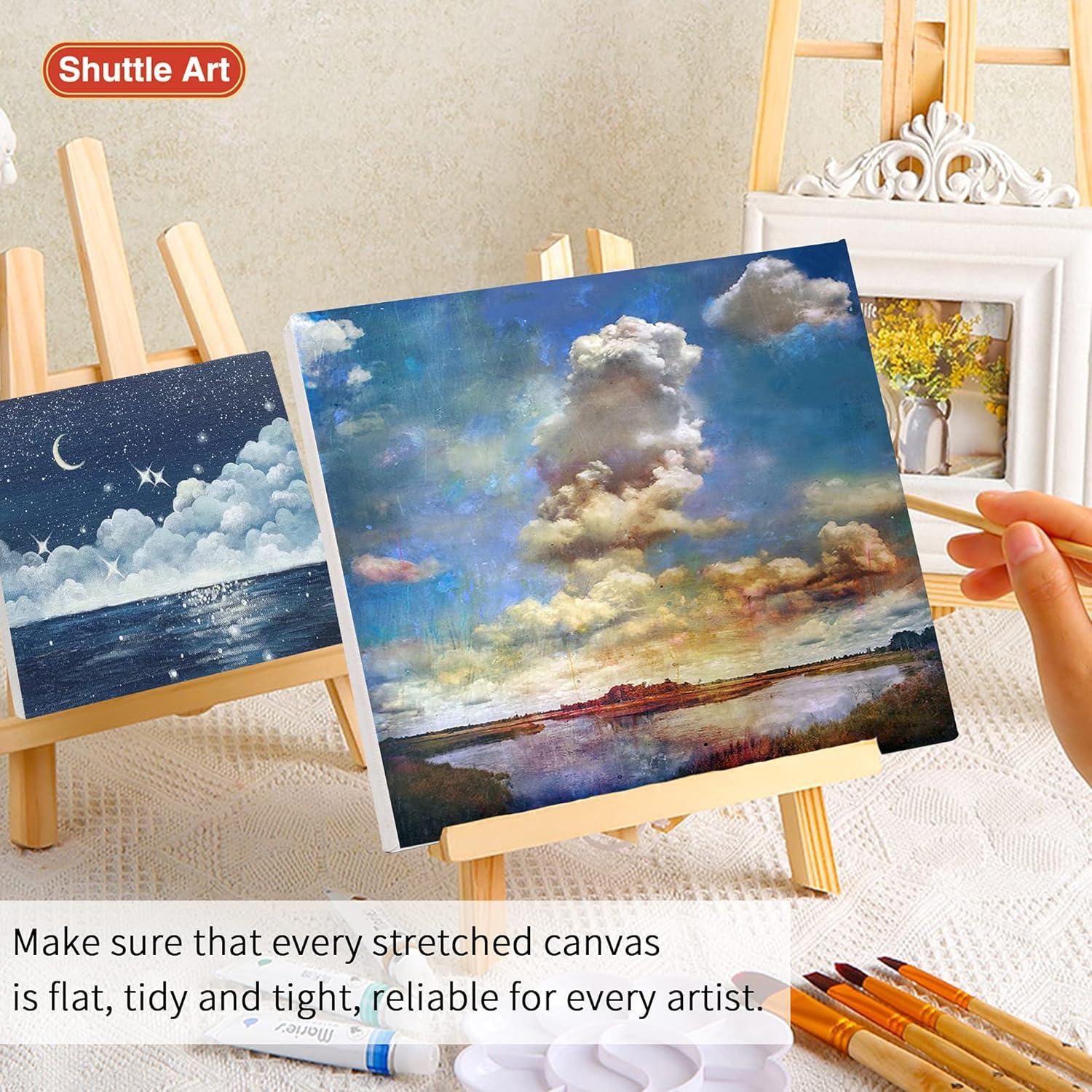 Shuttle Art Stretched Canvas and Acrylic Paint Bundle, Art Painting Supplies Set for 50 Colors Acrylic Paint Bottles (60ml/2oz) & 20 Pack Painting Canvas (5×7”, 8×10”)