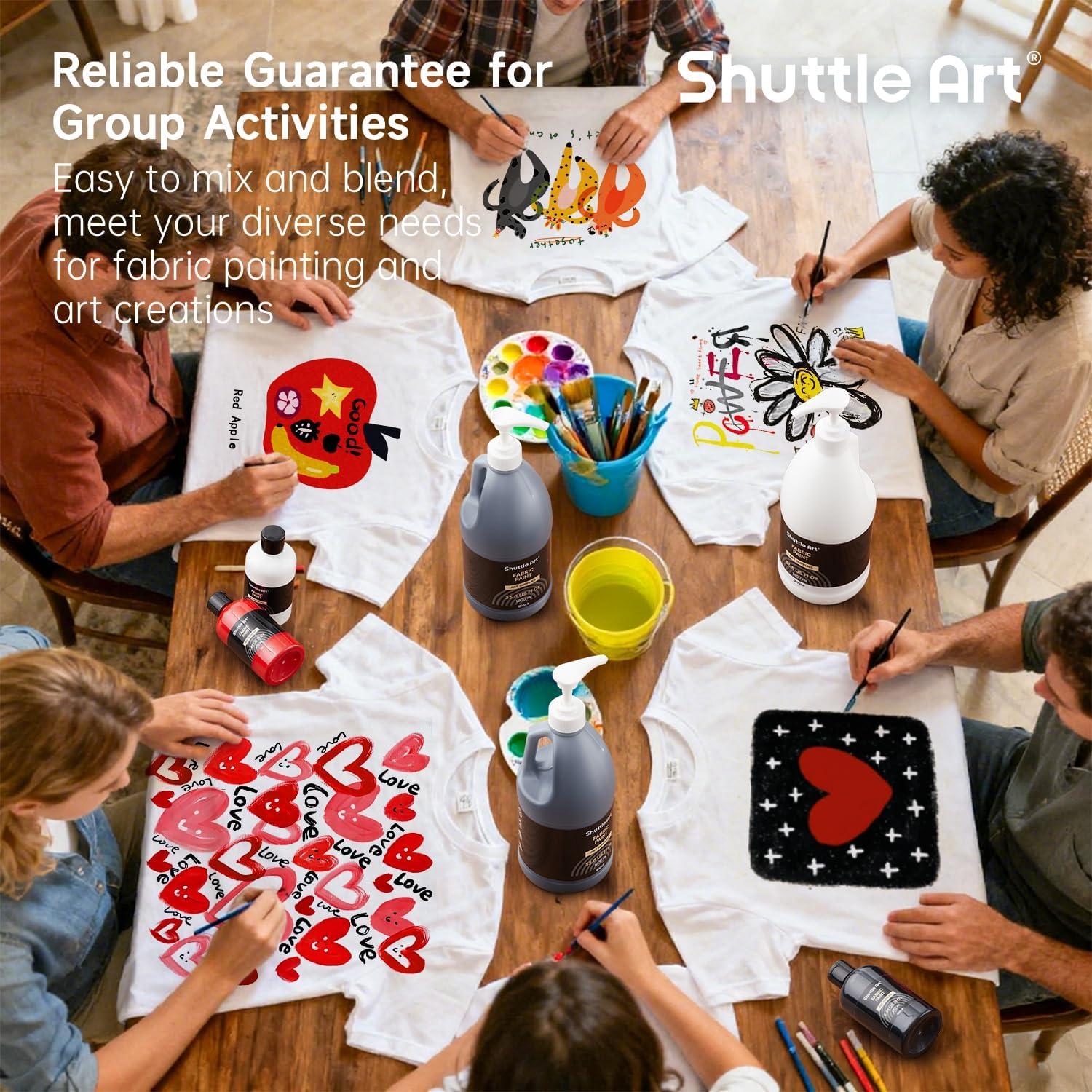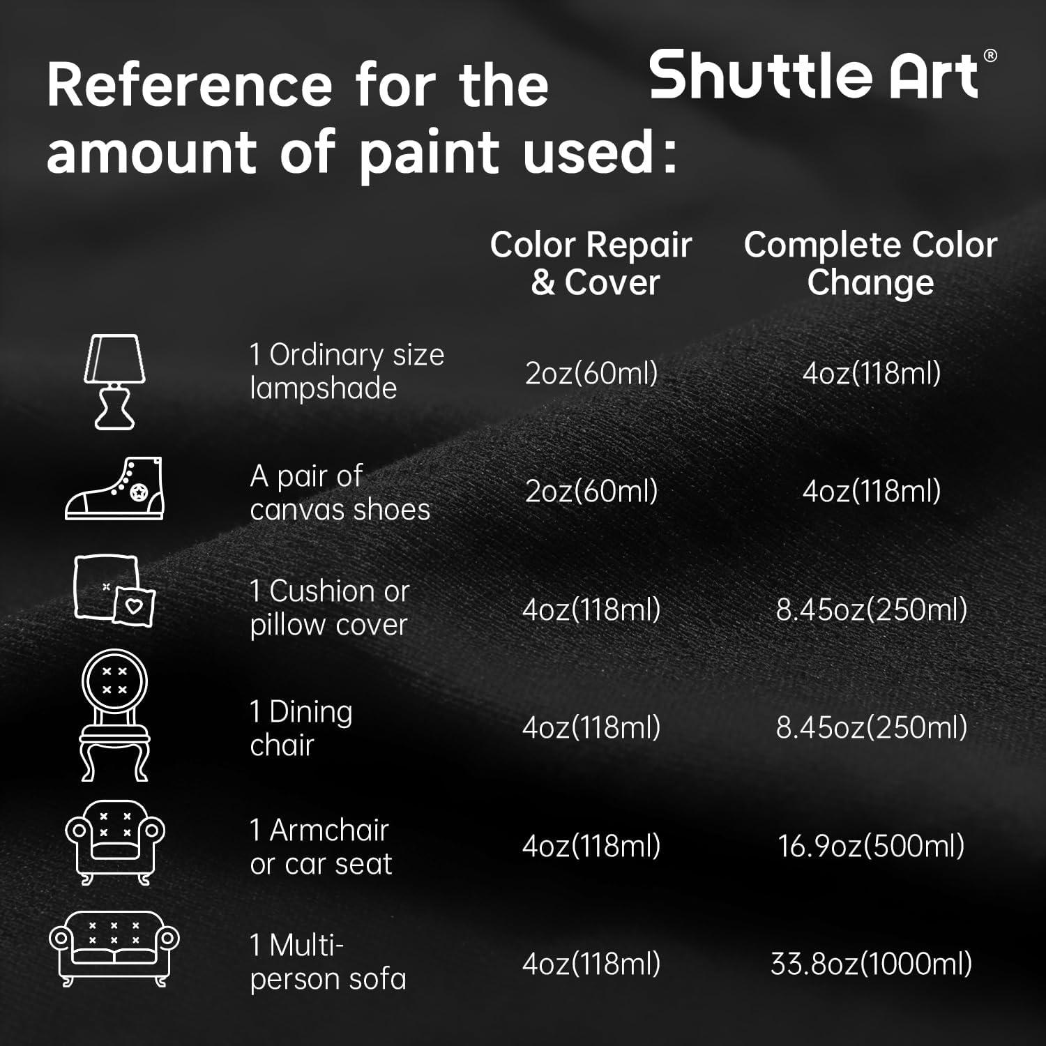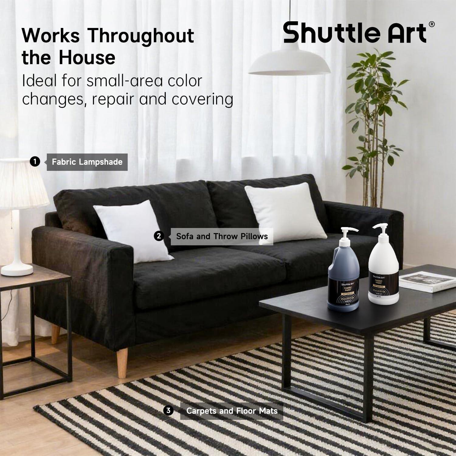 WHITE FABRIC PAINT: Shuttle Art fabric paint is in 33.8oz, 1000 ml bottle of rich white, the easy-press pump head gives you complete control.ideal for heavy-duty and repeated use on big surfaces like sofas, auto seats, outdoor cushions, and curtains, while also suitable for finer fabric detailing.