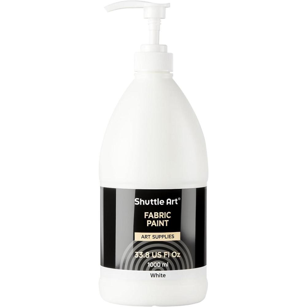 Shuttle Art White Fabric Paint, 33.8 oz(1000 ml) Large Bottle with Pump, Permanent Fabric Paint for Furniture, Sofa, Cushions, Clothes, Soft Non-Toxic Textile Paint for Color Changing, Renewal & Art Creations(White)