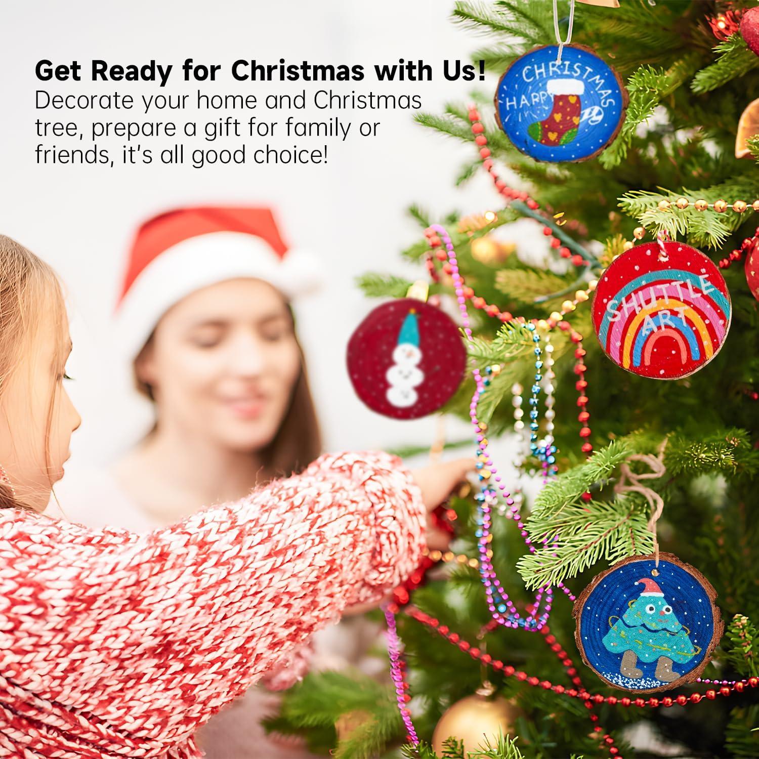 Wood Slices Kit, Shuttle Art 35 PCS Unfinished Natural Wood Slices with Pre-Drilled Hole, Acrylic Paint, Permanent Markers, Jute Twine, DIY Craft for Kids Adults Holiday Decoration Christmas Ornaments(Regular)